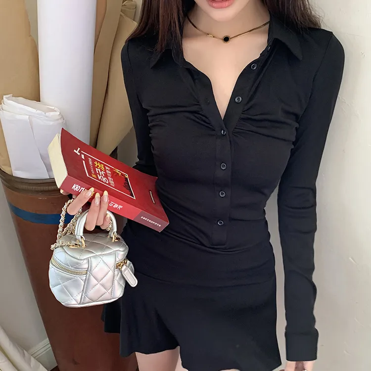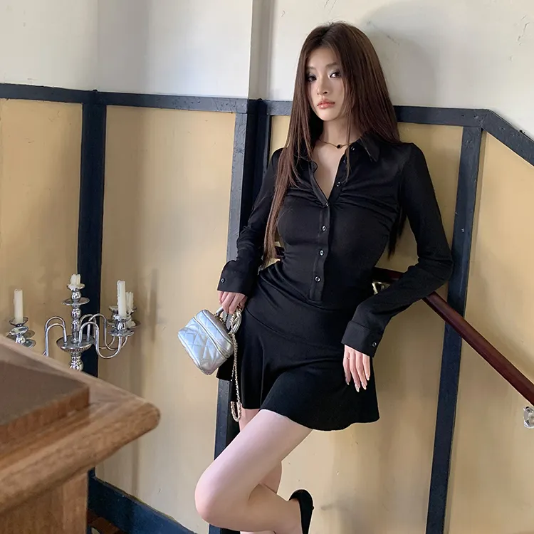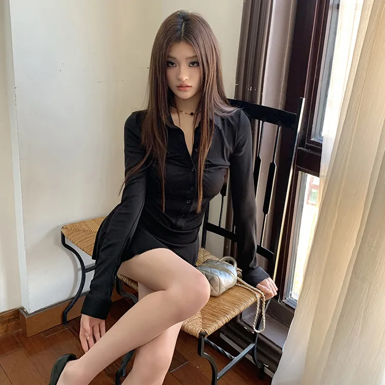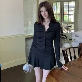 SEAR OFFICIAL Черное Женское Длинное Платье с Длинными Рукавами