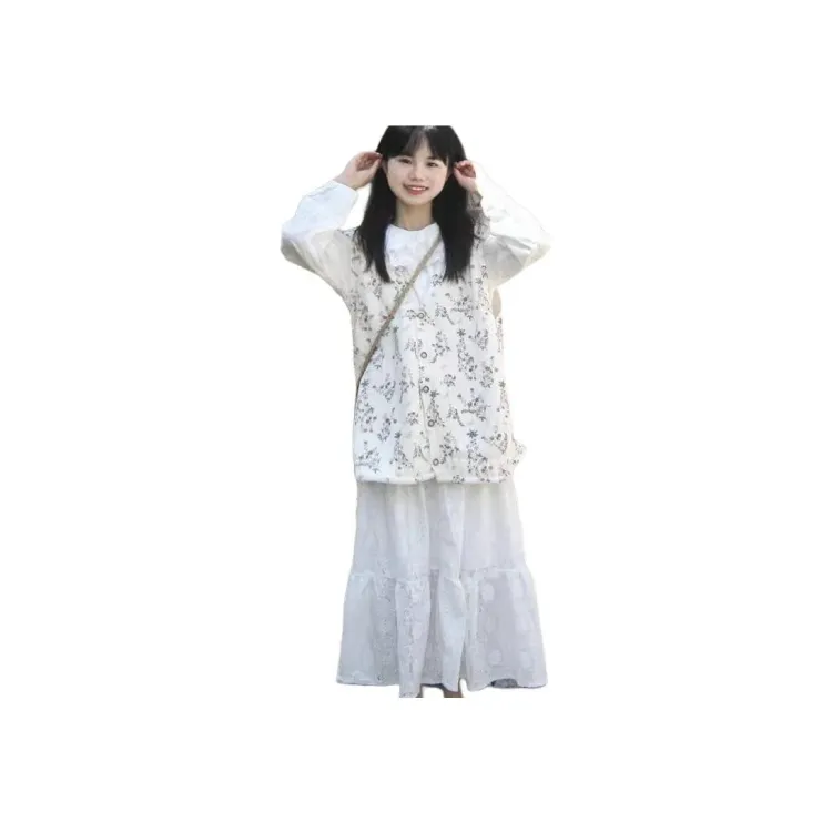 Цветочный жилет + белая рубашка + белая юбка