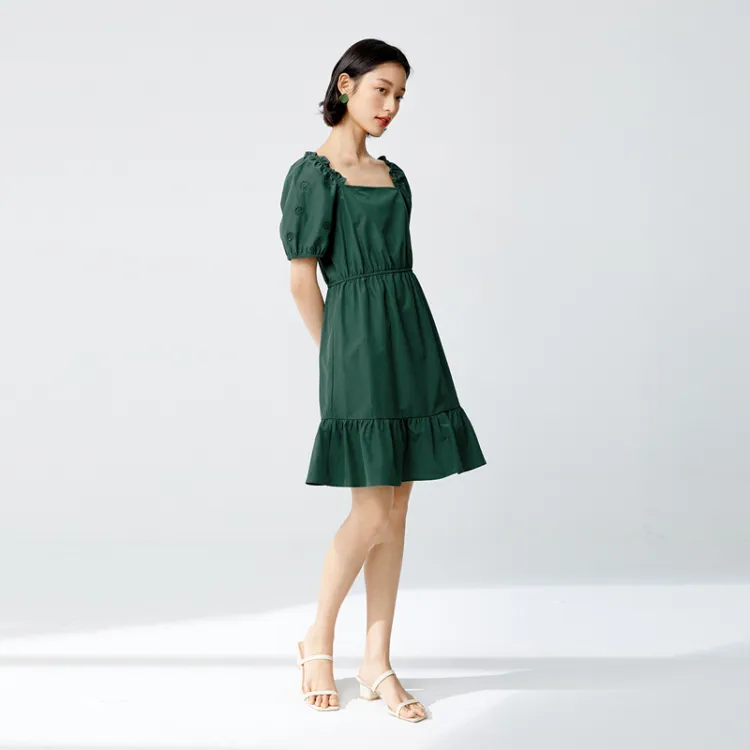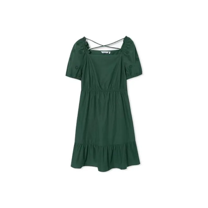 SEIFINI Лесной зеленый Женские Платья с Коротким Рукавом
