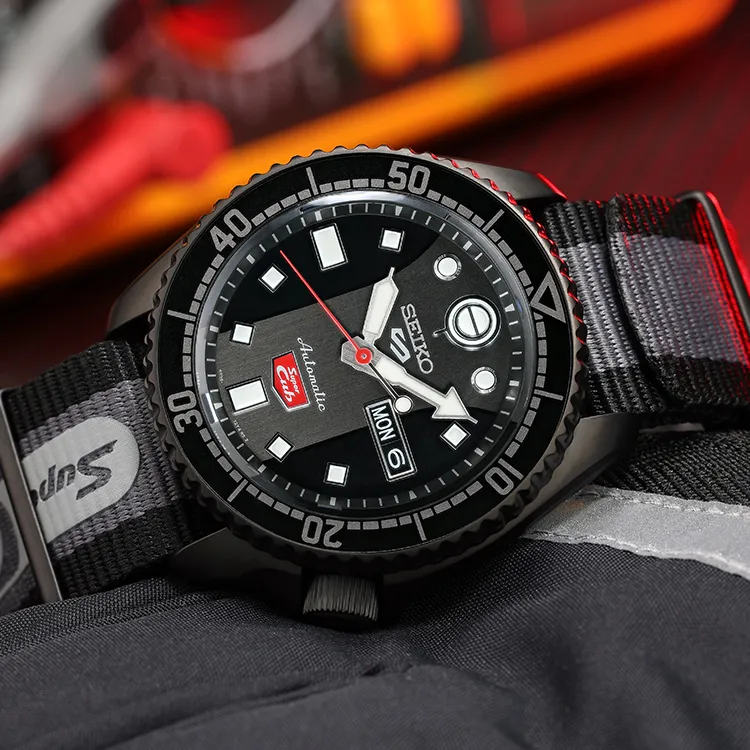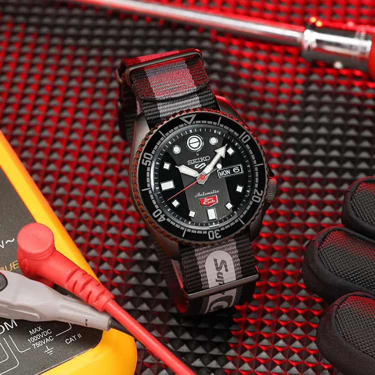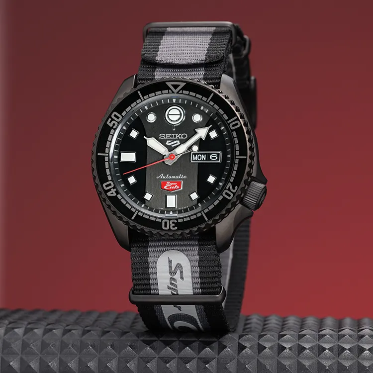 Коллекция Seiko 5 Sports Механические часы из нержавеющей стали с ремешком из нейлона унисекс черный циферблат