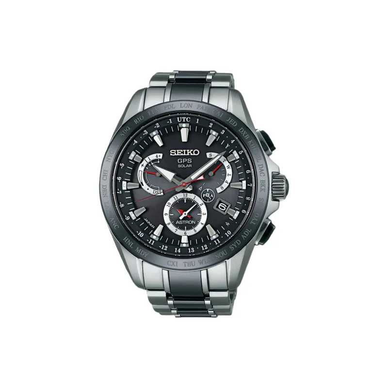 SEIKO Astron Series Солнечный Кварцевый Механизм Титан Ремешок Часы Мужские Черный Циферблат