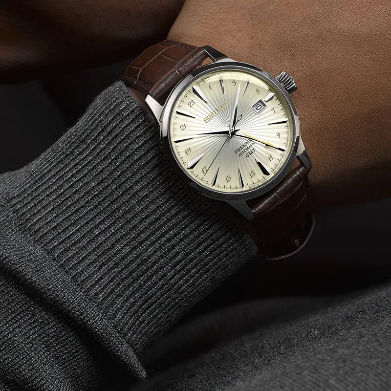 SEIKO Автоматический Ручной Механизм Корова Кожа Ремешок Часы 40,5 мм Мужские Часы Серебристый Циферблат