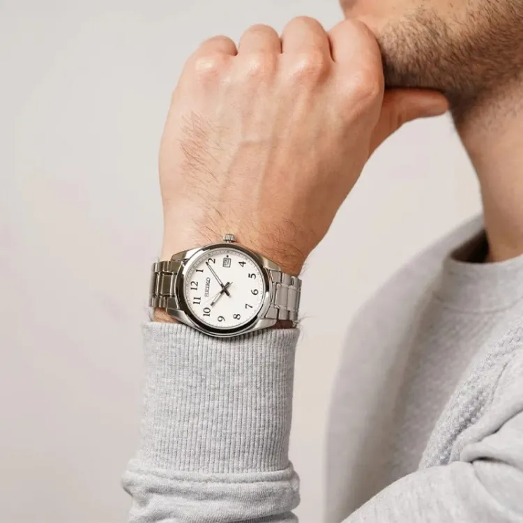 SEIKO Кварцевый механизм нержавеющая сталь ремешок мужские часы белый циферблат модель SUR459P1