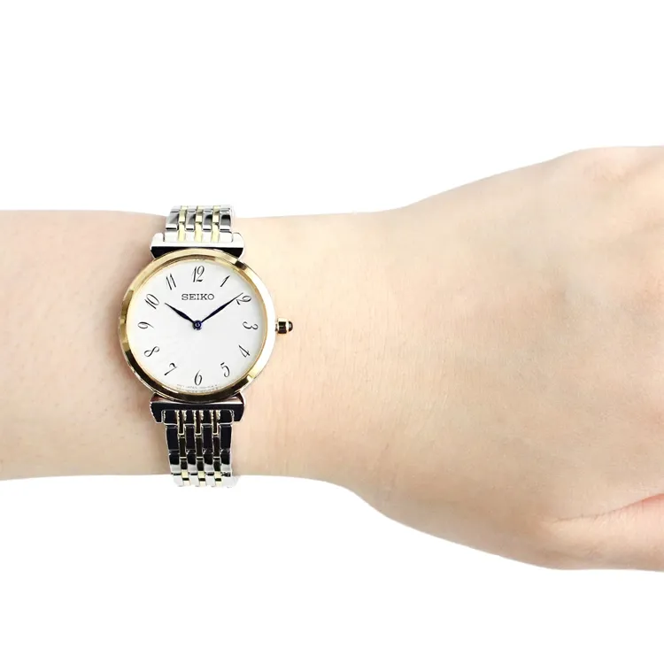 SEIKO Кварцевый механизм нержавеющая сталь ремешок часы 30 мм женский золотой циферблат модель SFQ800P