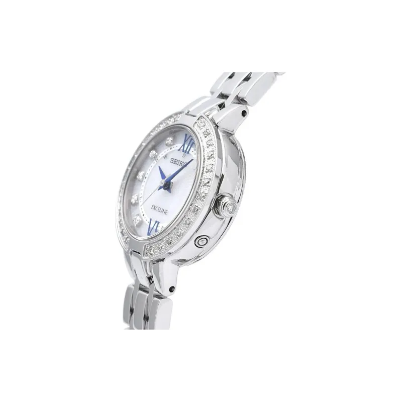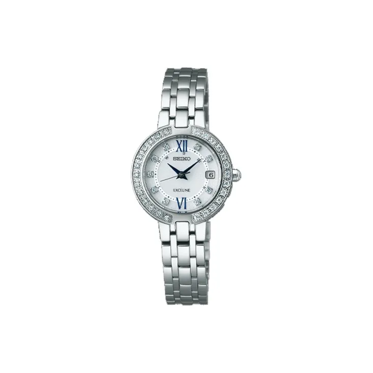 SEIKO Exceline Collection Солнечный кварцевый механизм часы с ремешком из нержавеющей стали женские часы белый циферблат модель SWCW083
