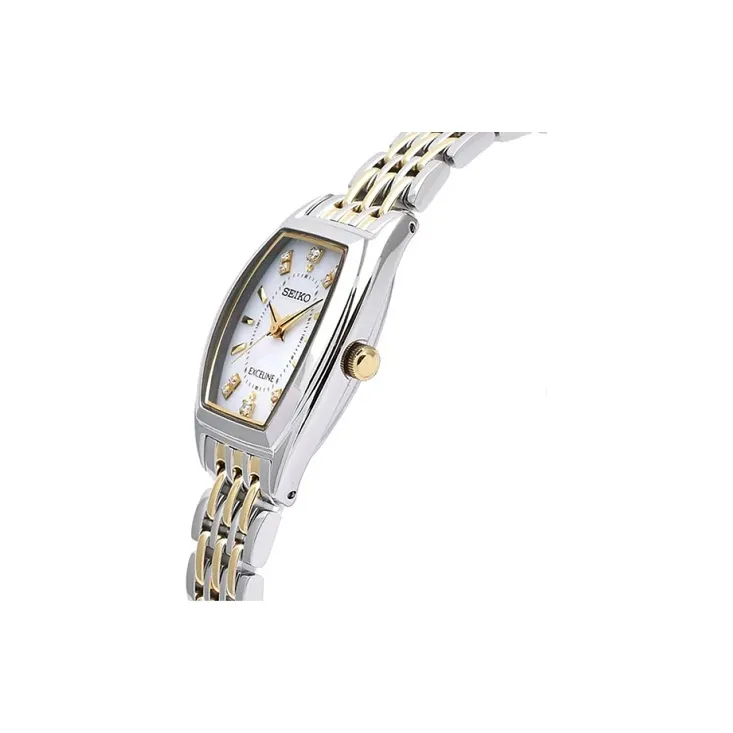 SEIKO Exceline Солнечный Механизм Нержавеющая Сталь Ремешок Часы Унисекс Жемчужная Раковина Циферблат