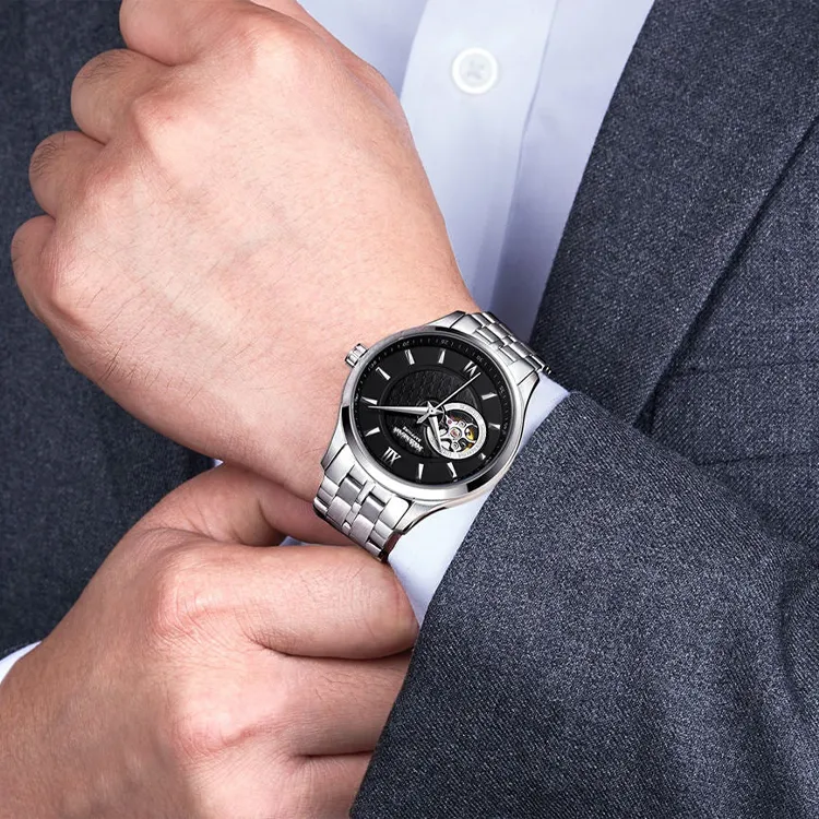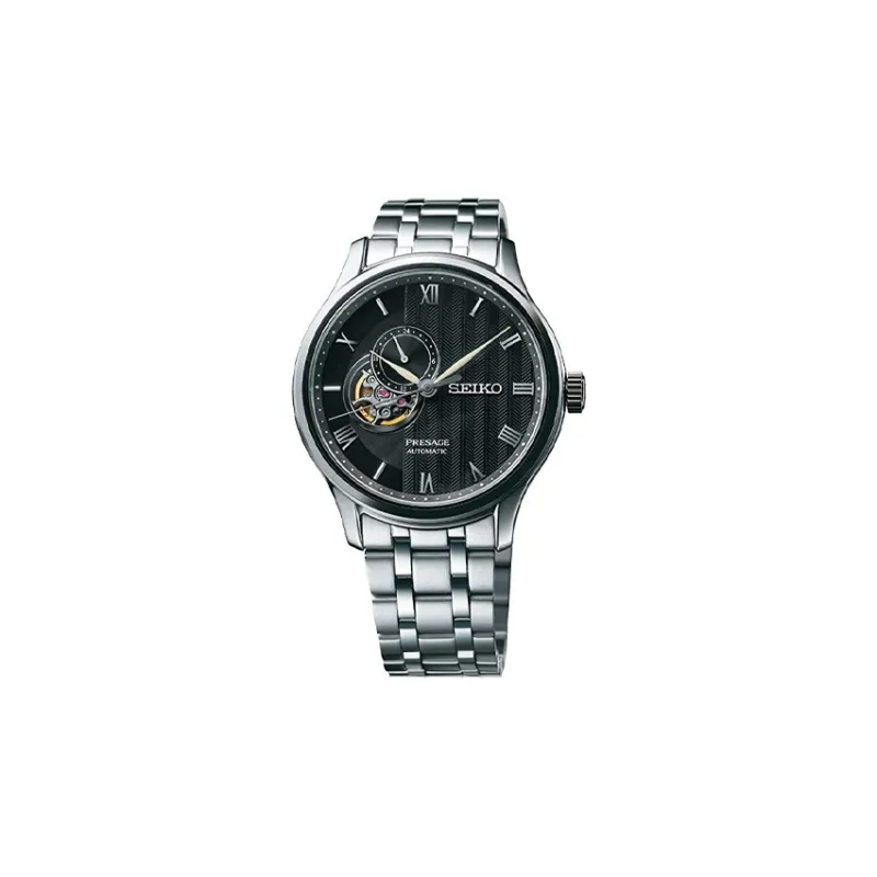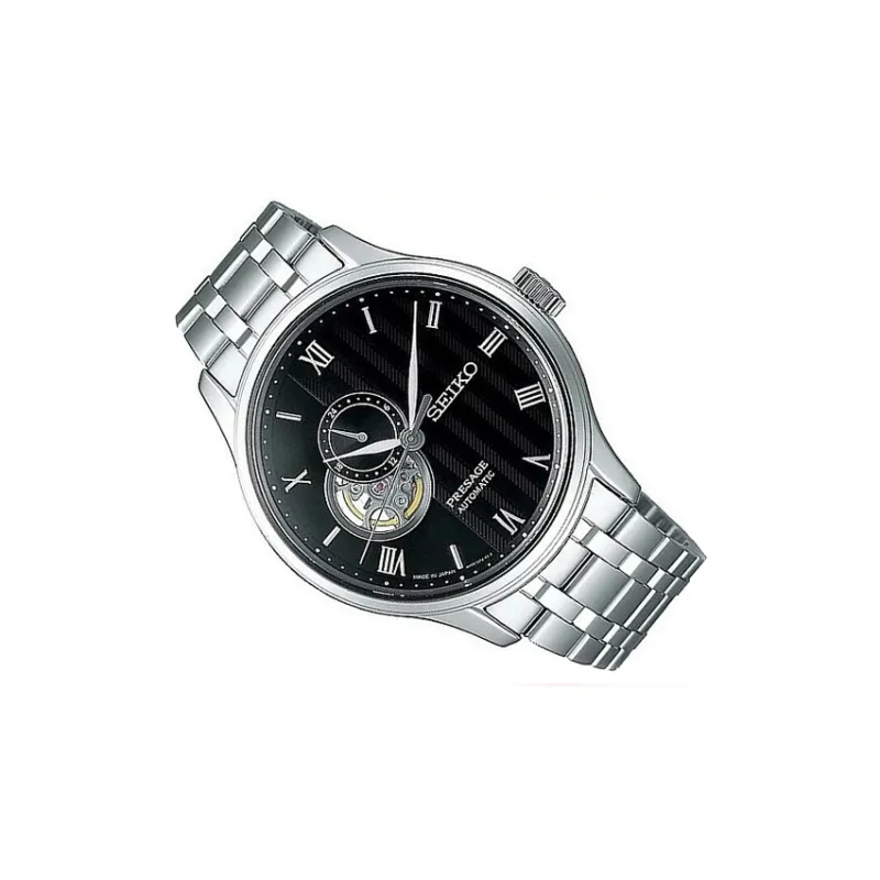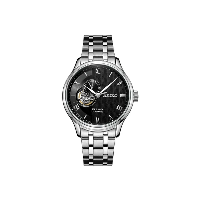 SEIKO Presage Series Механический механизм часы с ремешком из нержавеющей стали черный циферблат мужские часы