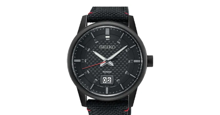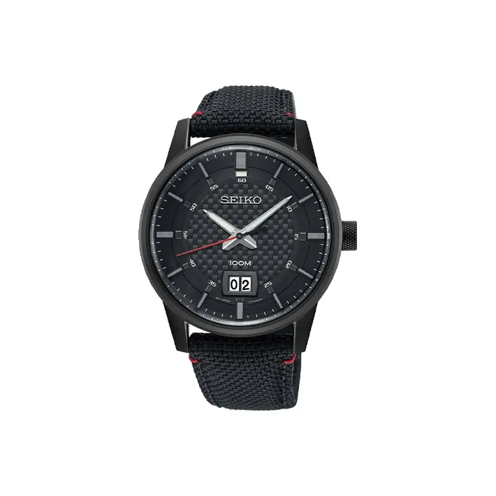 SEIKO Quartz Collection Кварцовый механизм Canvas Ремешок Часы Мужские Черный циферблат SUR271P1
