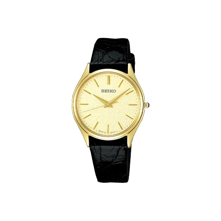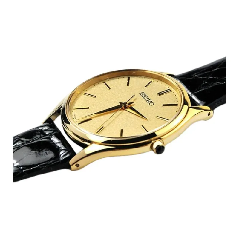 SEIKO Кварцевый механизм натуральная кожа ремешок мужские часы золотой циферблат