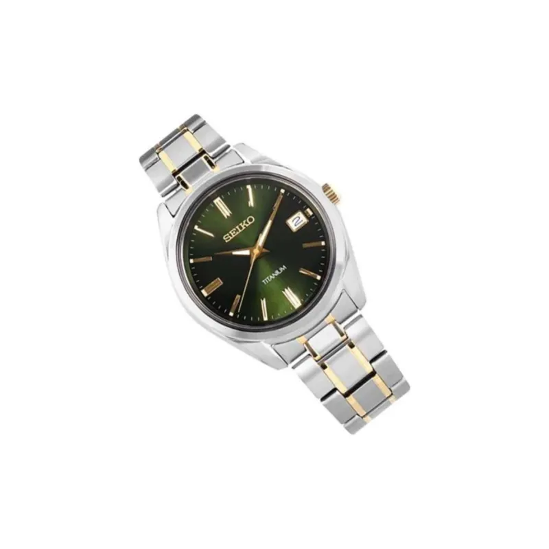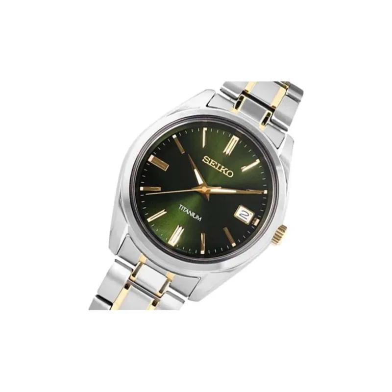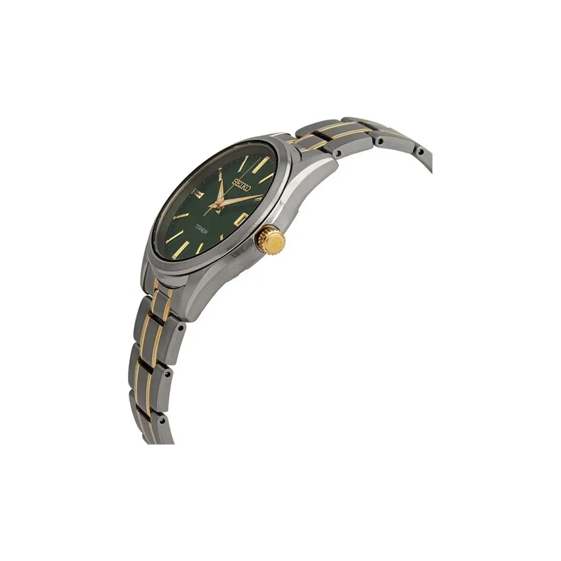 SEIKO Кварцевый механизм Титан Ремешок Часы Мужские Зеленый циферблат