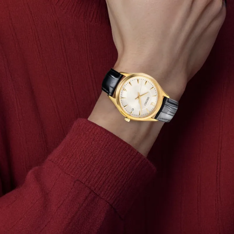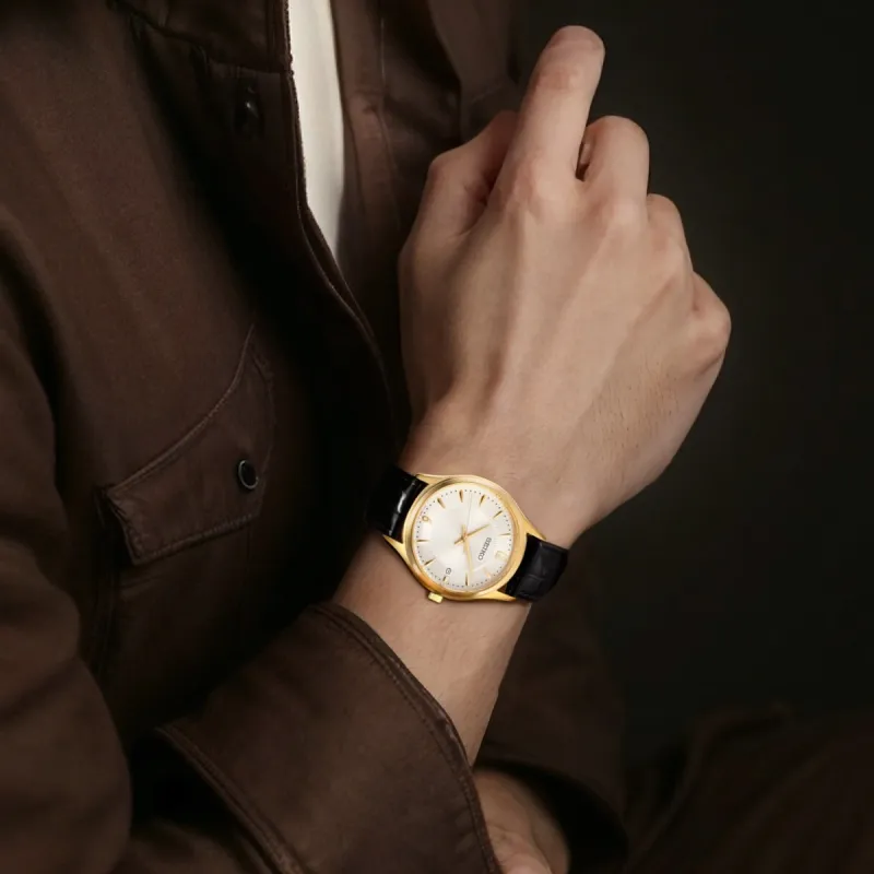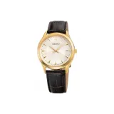 SEIKO Sapphire Series Кварцевый механизм Кожаный ремешок Часы 40 мм Мужские часы Золотистый циферблат