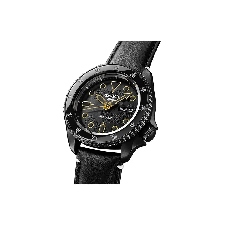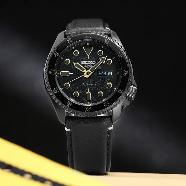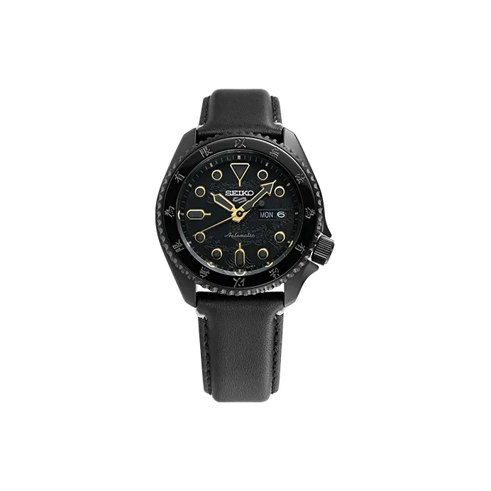 SEIKO Series 5 Механические часы с кожаным ремешком унисекс черный циферблат