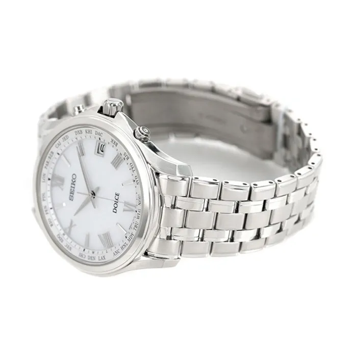 SEIKO Solar Кварцевый Механизм Титан Ремешок Часы 39,1мм Мужские Часы Белый Циферблат SADZ201