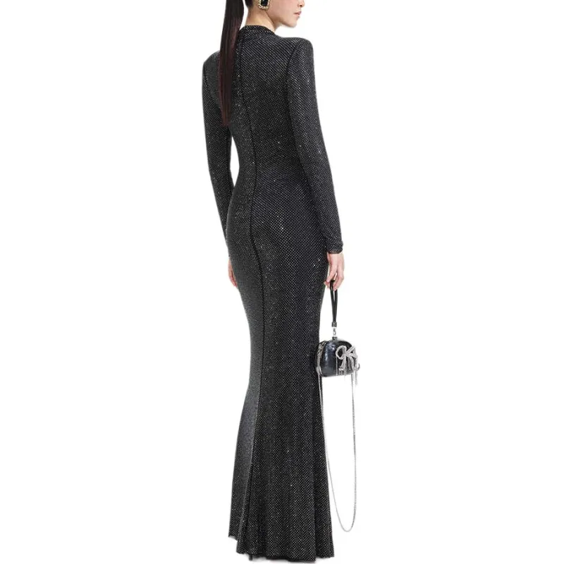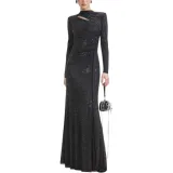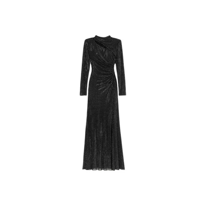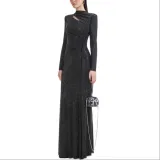 Self Portrait Длинное Платье с Длинными Рукавами Женское Классическое Черное