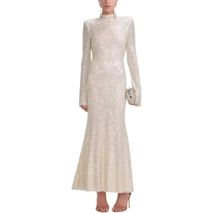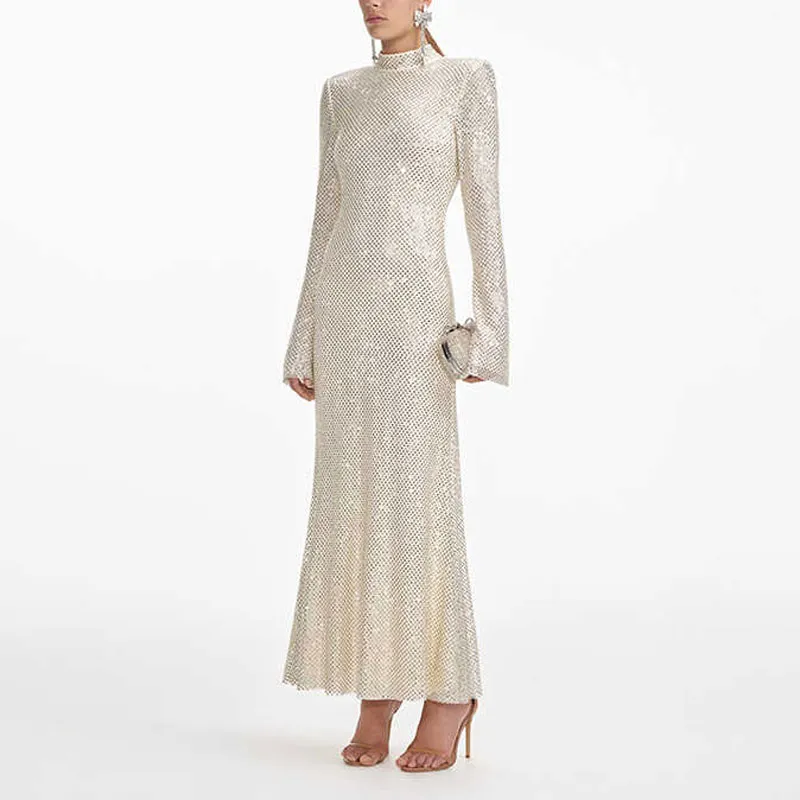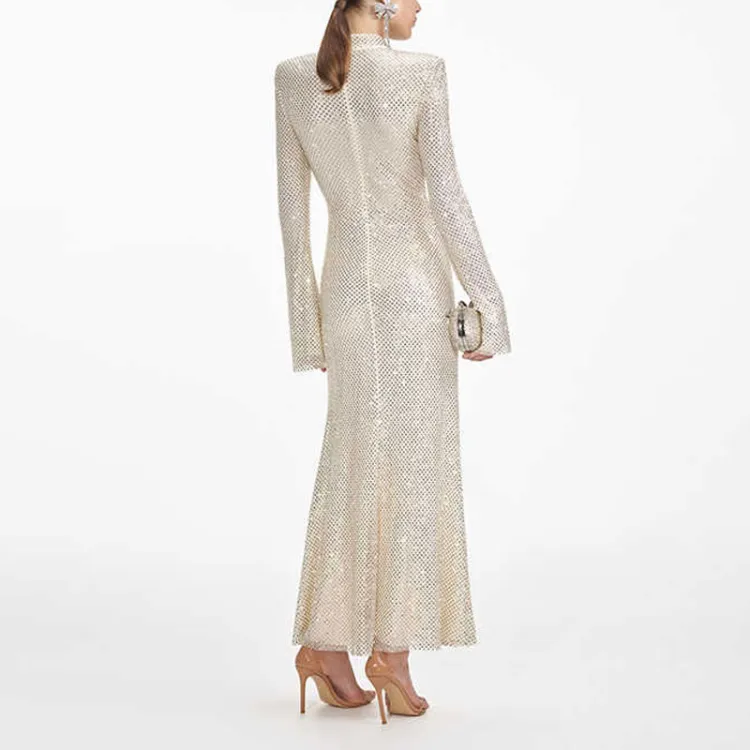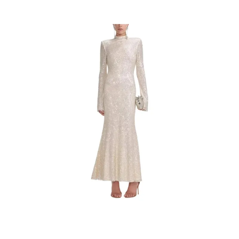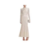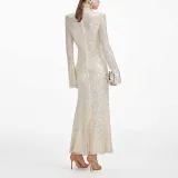 Self Portrait Новый год Длинное Платье с рукавами Женское Светлый Бежевый Абрикос