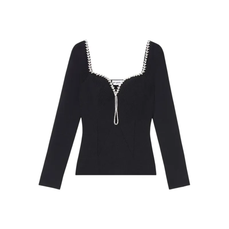 Self Portrait Трикотаж Женский Классический Черный
