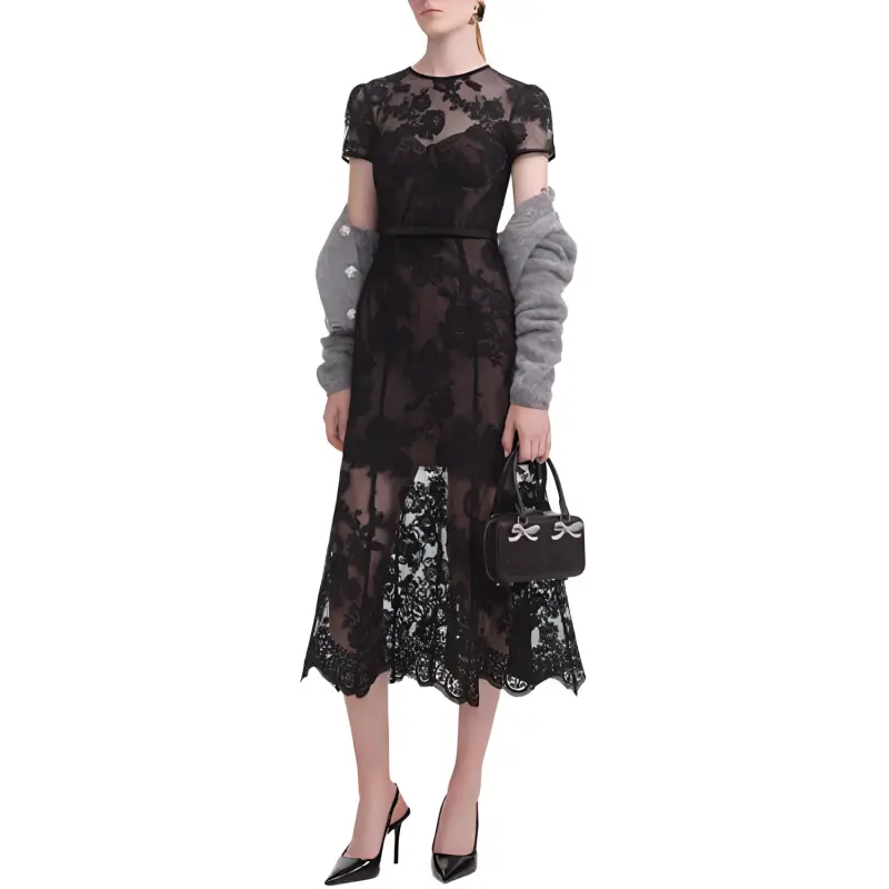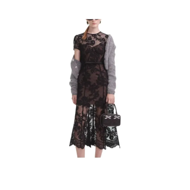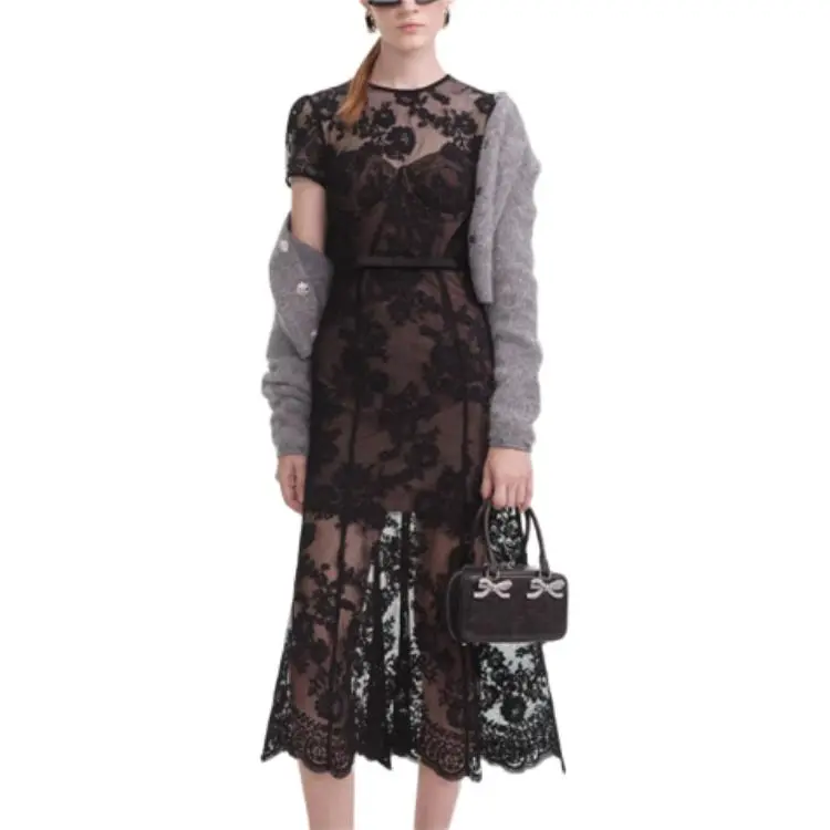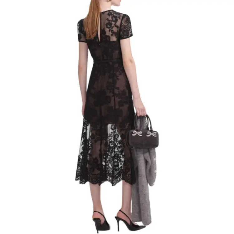 Self Portrait Короткий рукав Платье Женское Классический черный