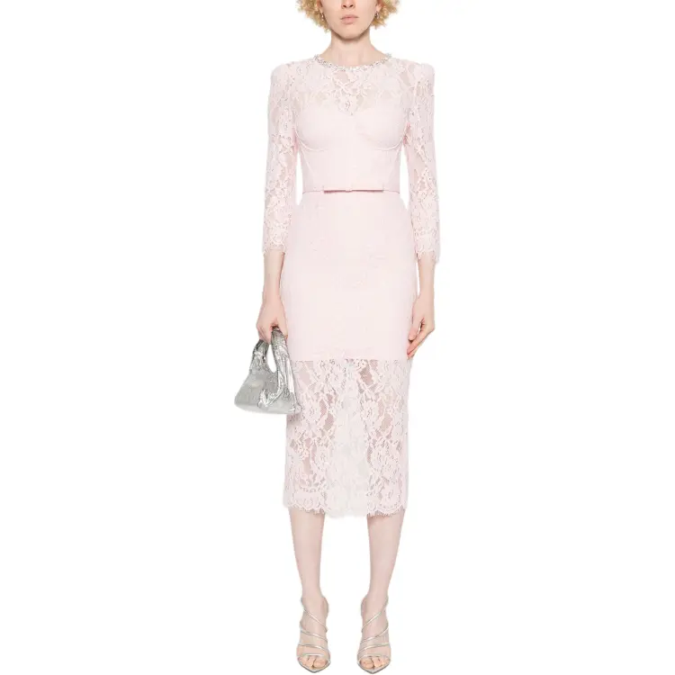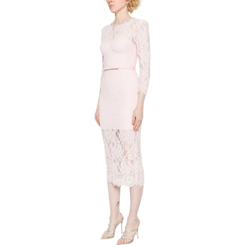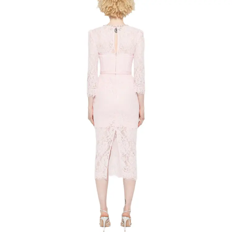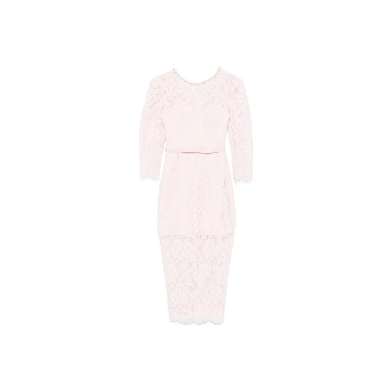 Self Portrait Длинное Платье с Длинными Рукавами Женское Светло-Розовое