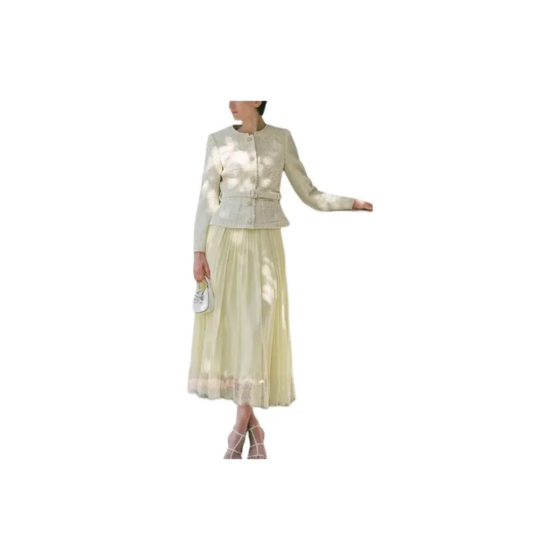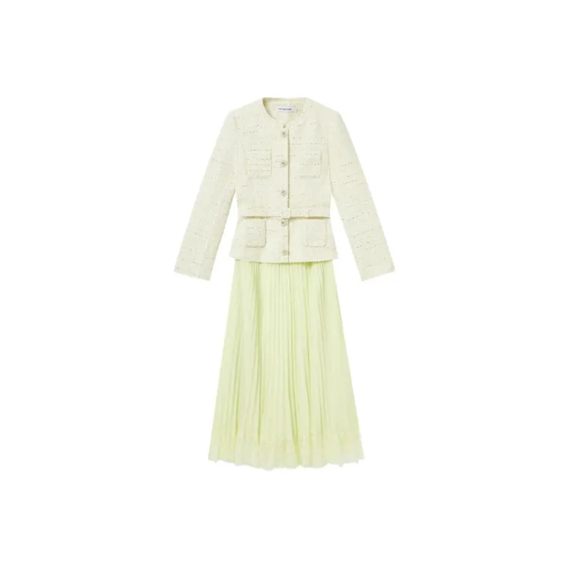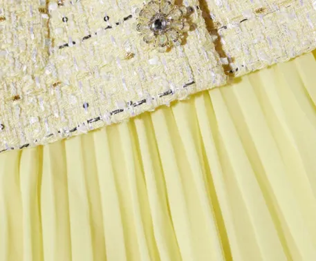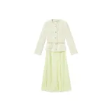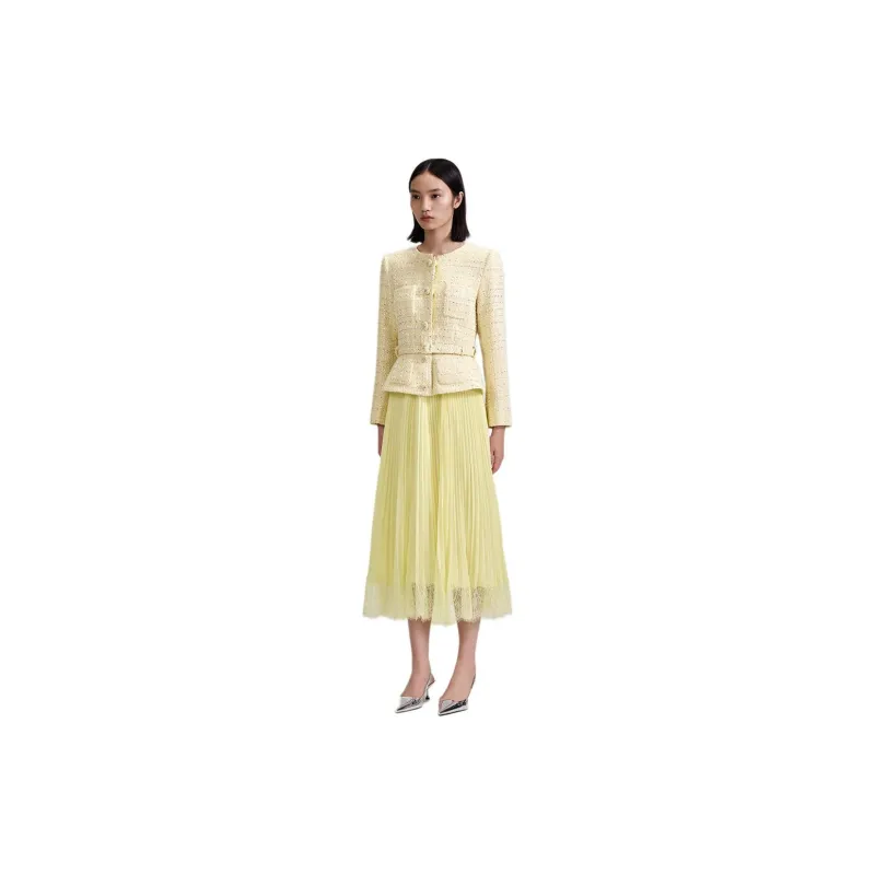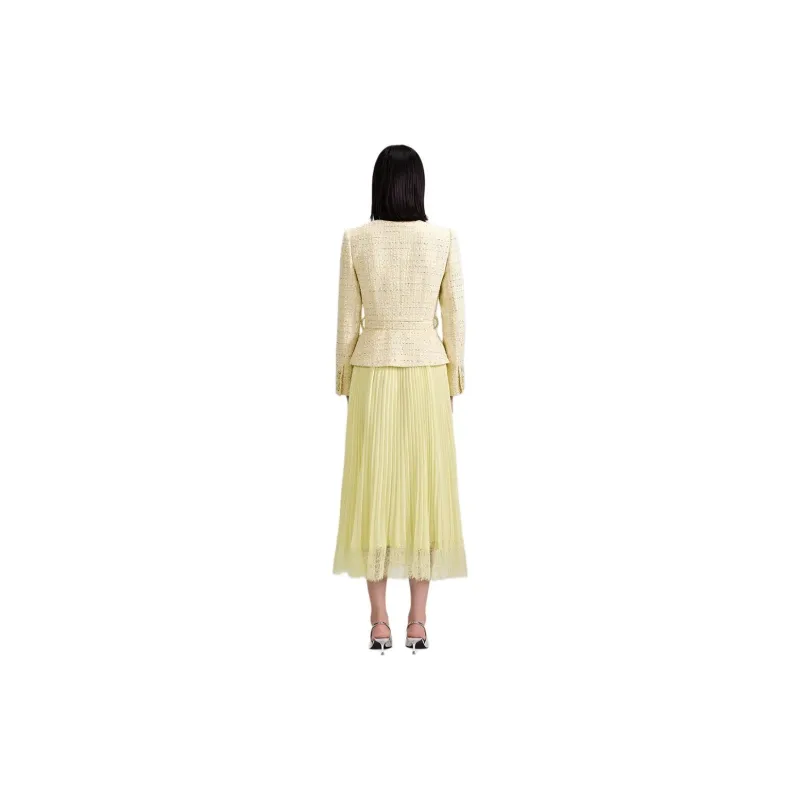 Self Portrait Длинное Платье с Длинными Рукавами Женское Кремово-Желтое