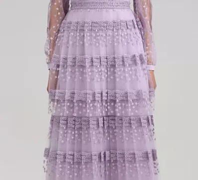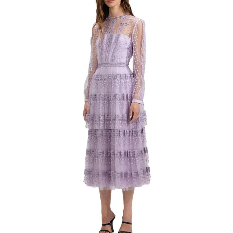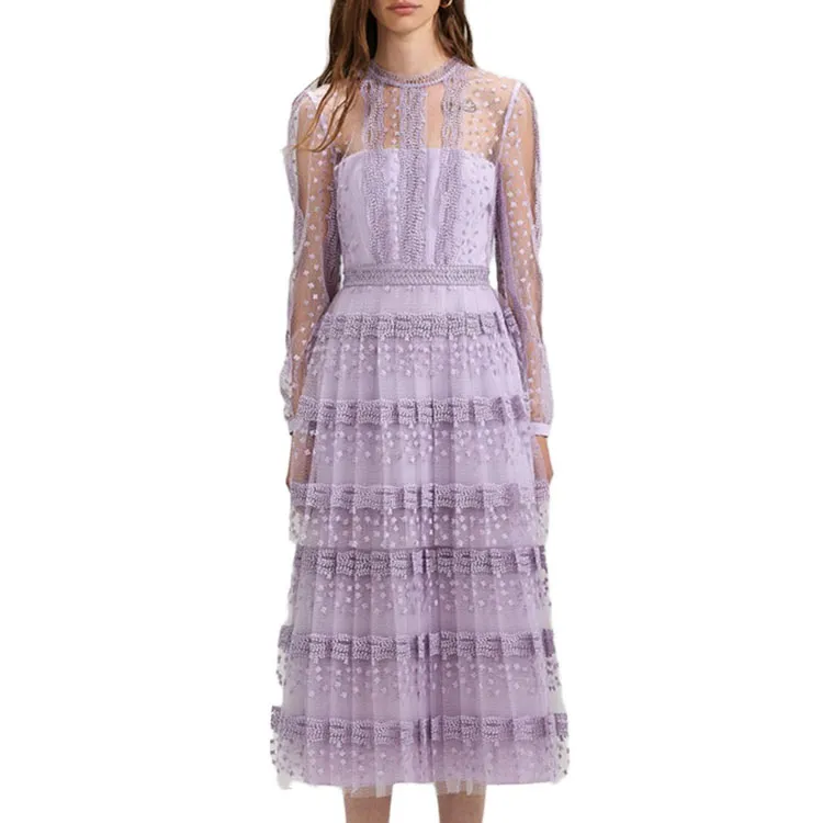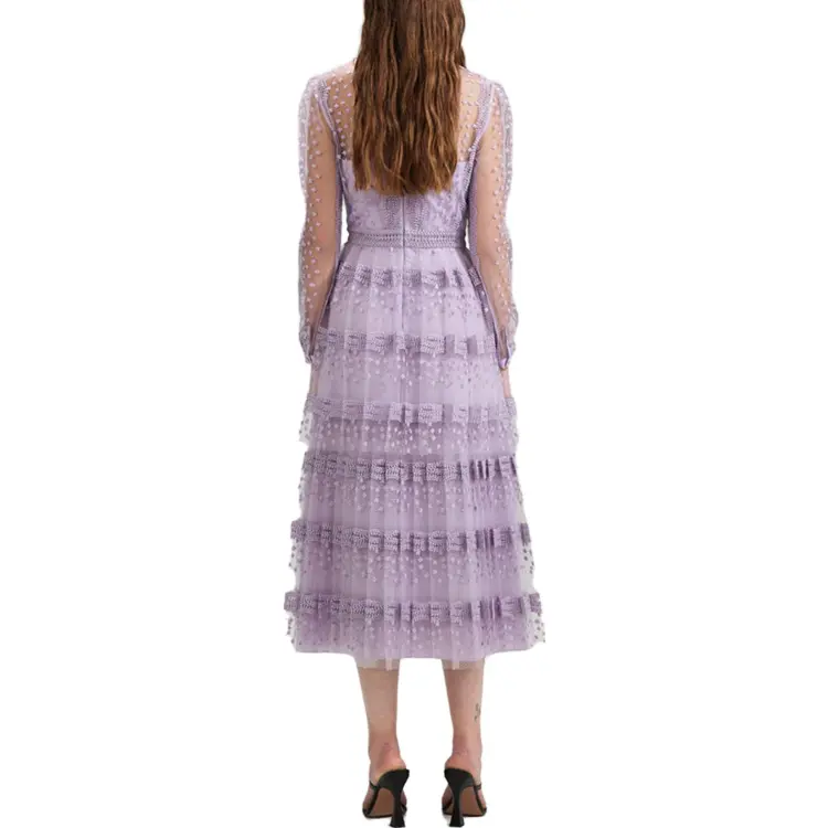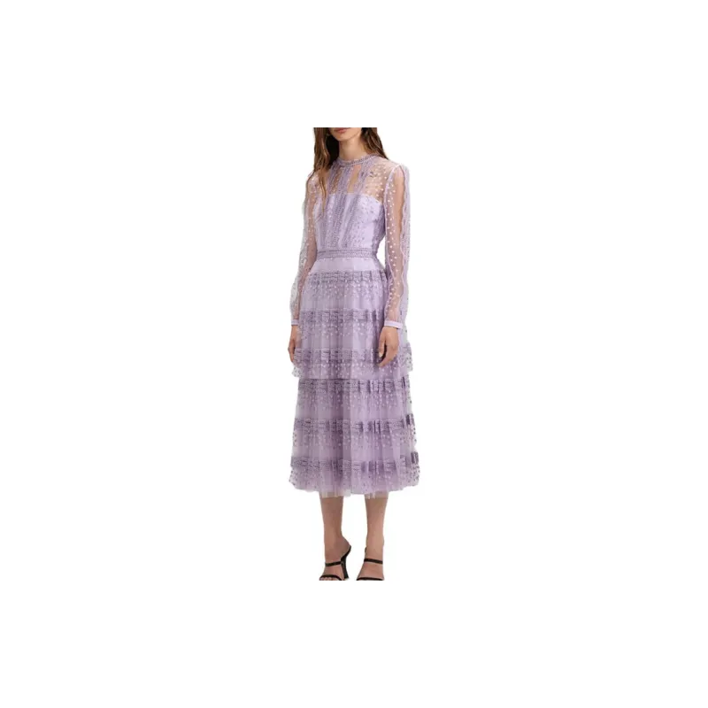 Self Портрет Длинное Платье с Длинными Рукавами Женское Сиреневый