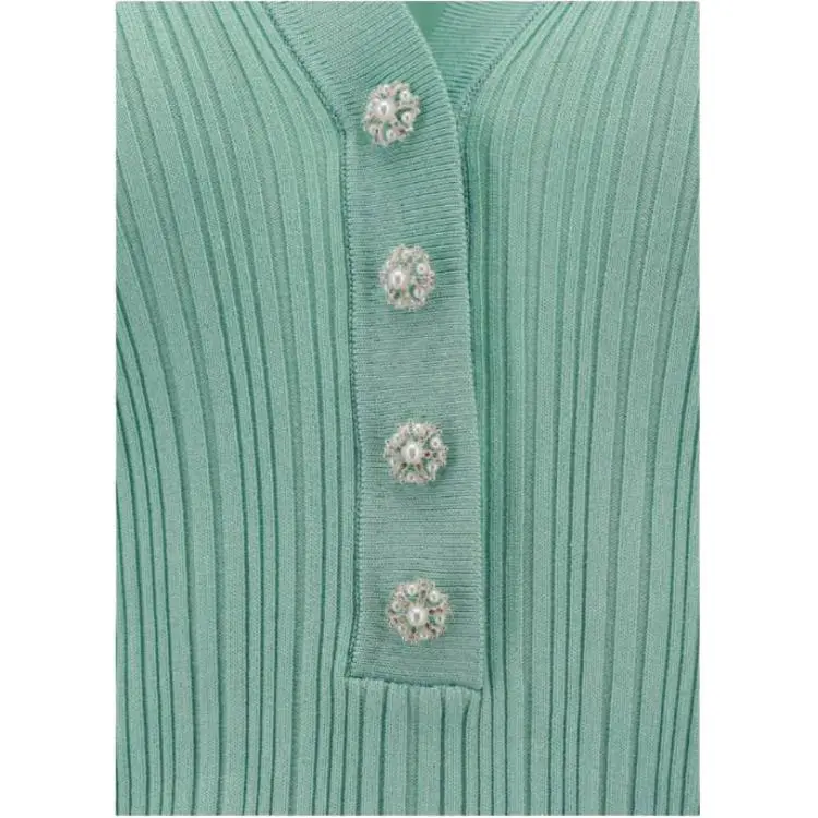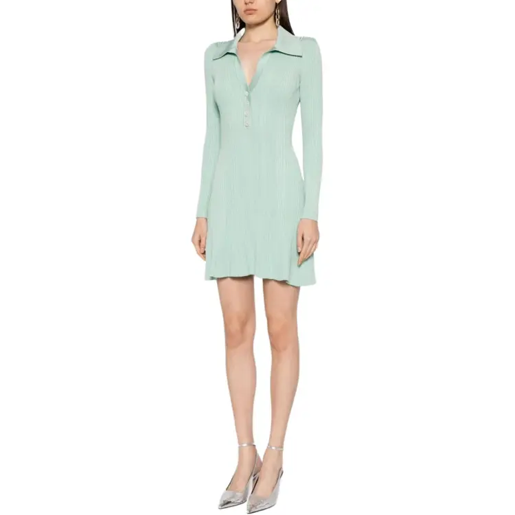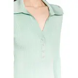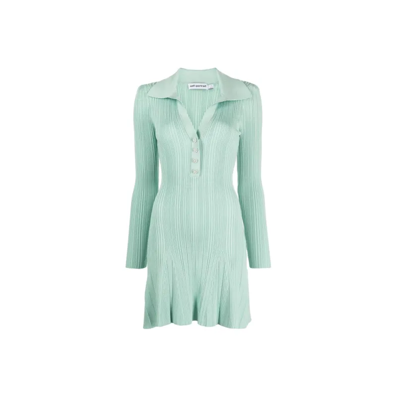 Self Portrait Длинное Платье с Длинными Рукавами Женское Мятно-Зеленый