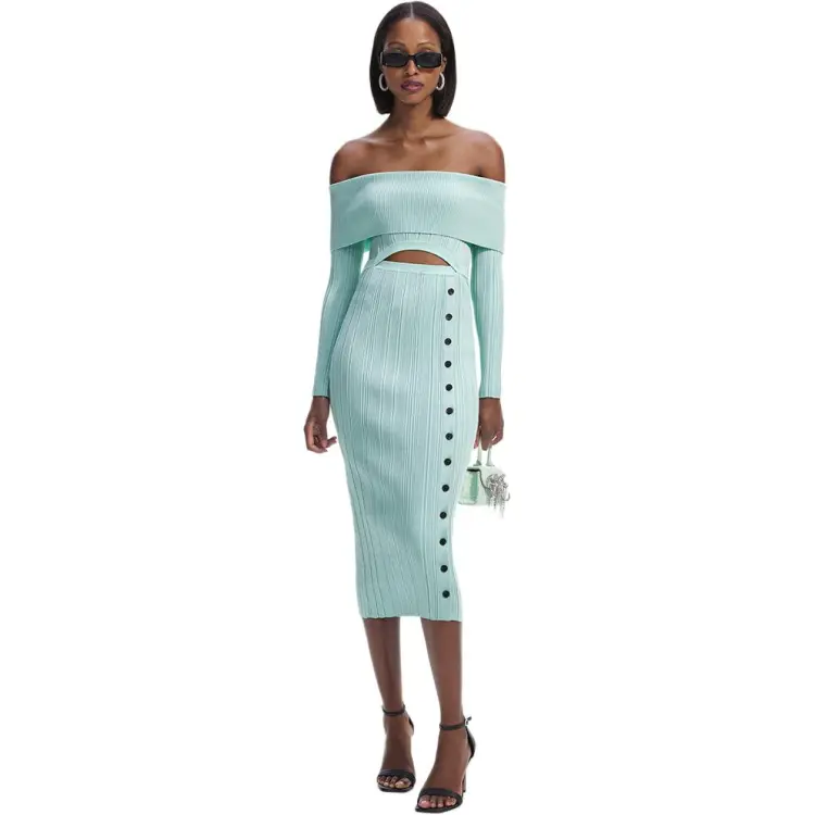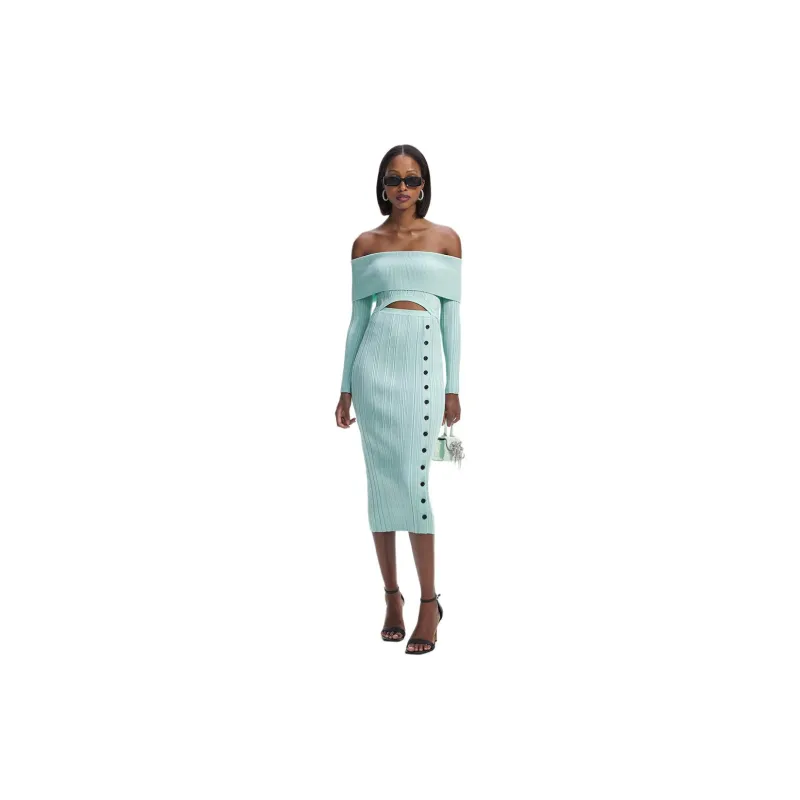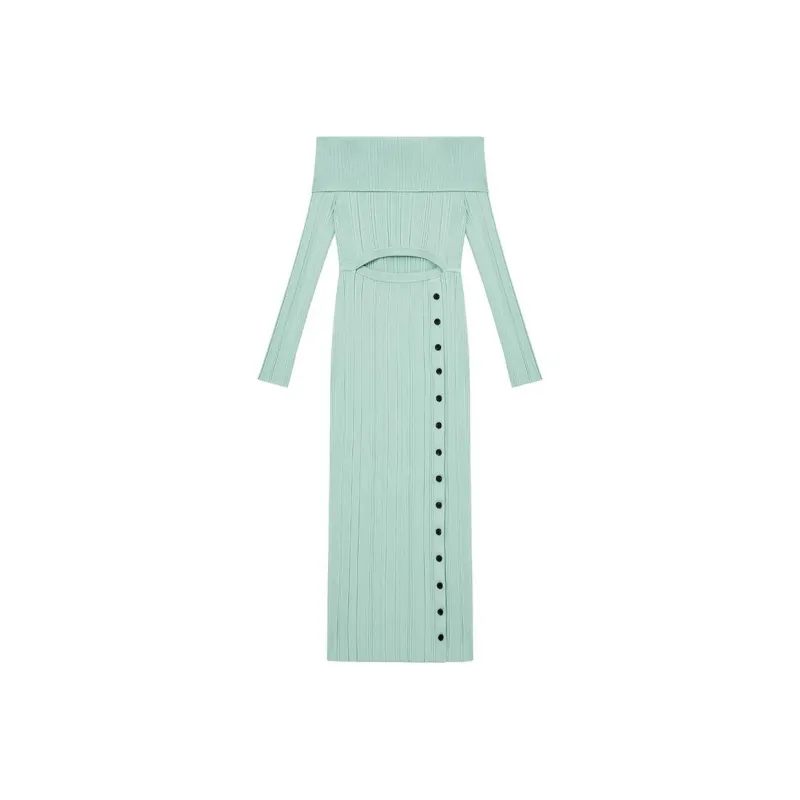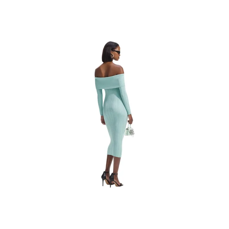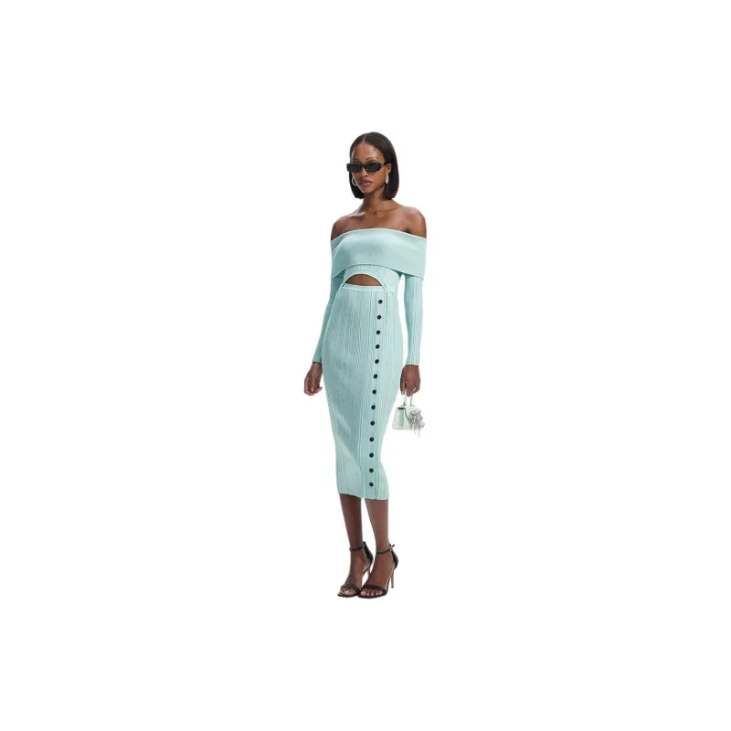 Self Portrait Длинное Платье с Длинными Рукавами Женское Мятно-Зеленый