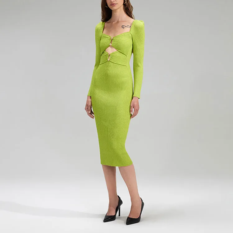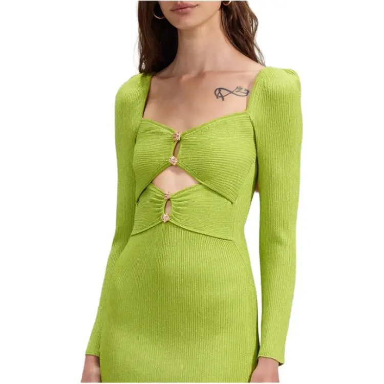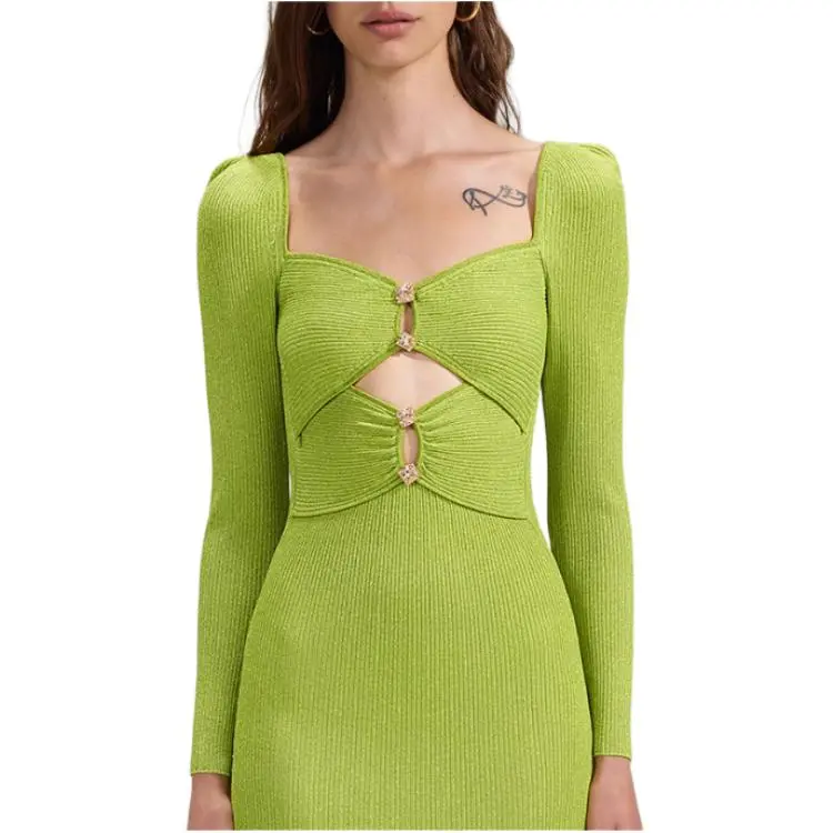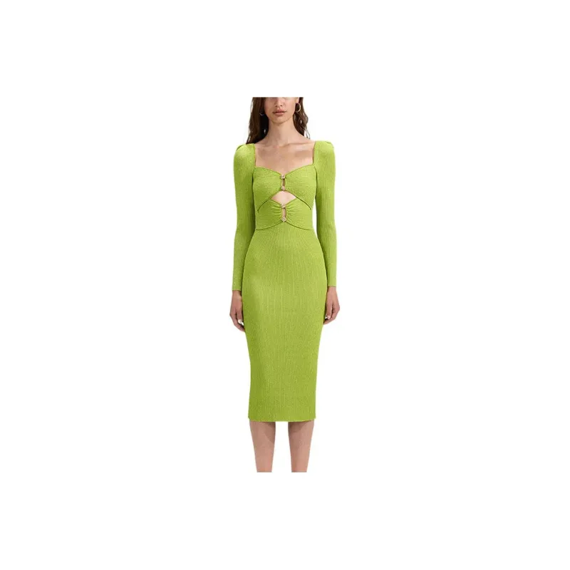 Self Портрет Фруктовый зеленый Женские Длинные Платья с Рукавами