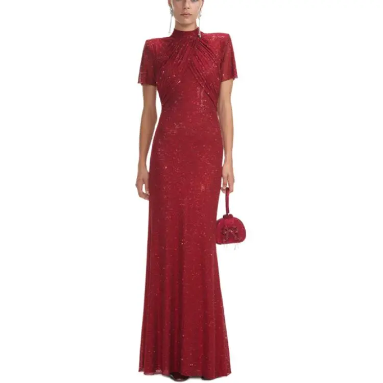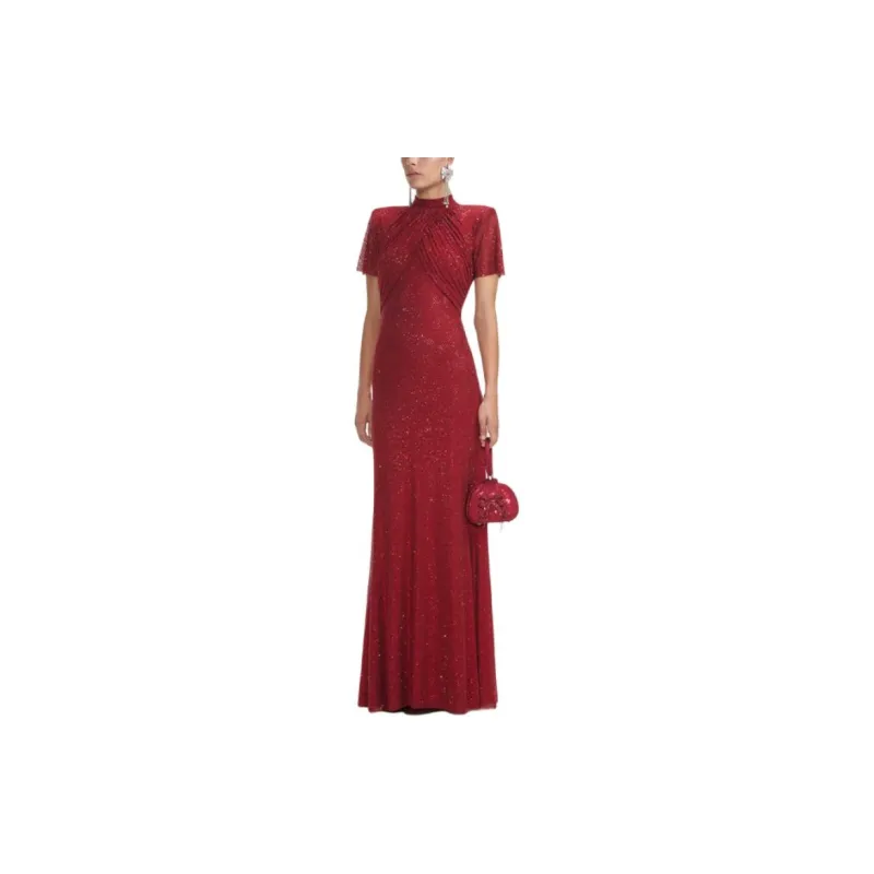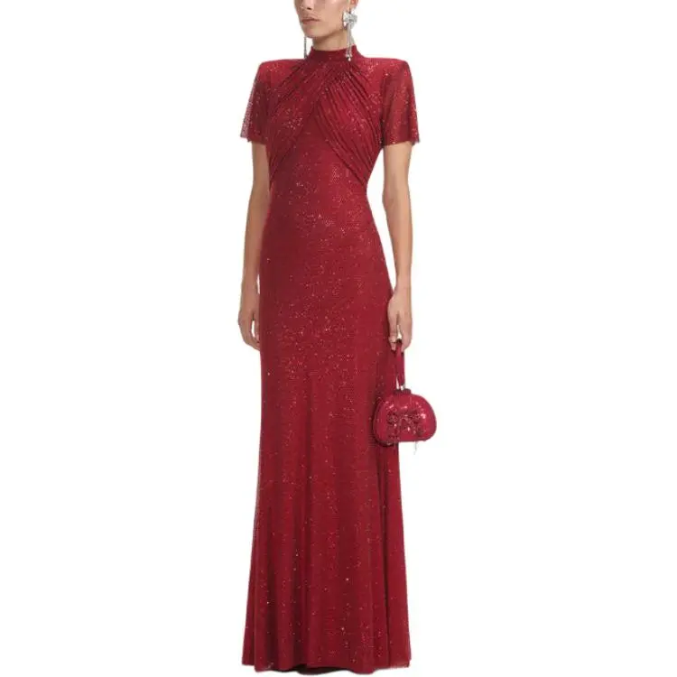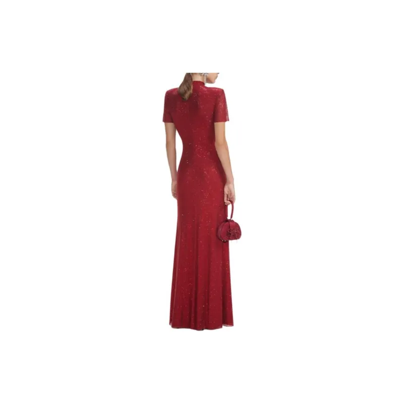 Self Portrait Короткий рукав Платье Женское Бордовый