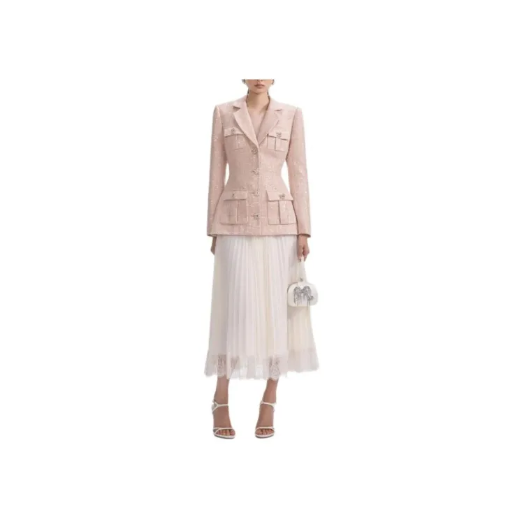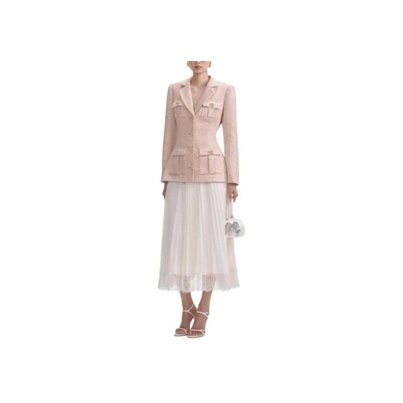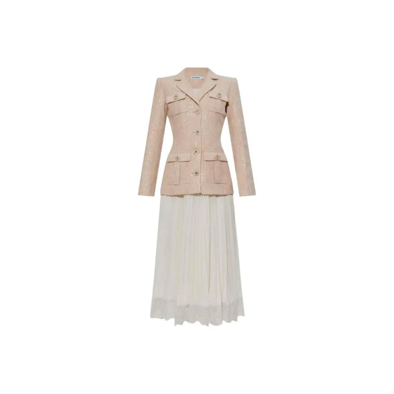 Self Портрет Длинный Sleeved Платье Женское Розовое