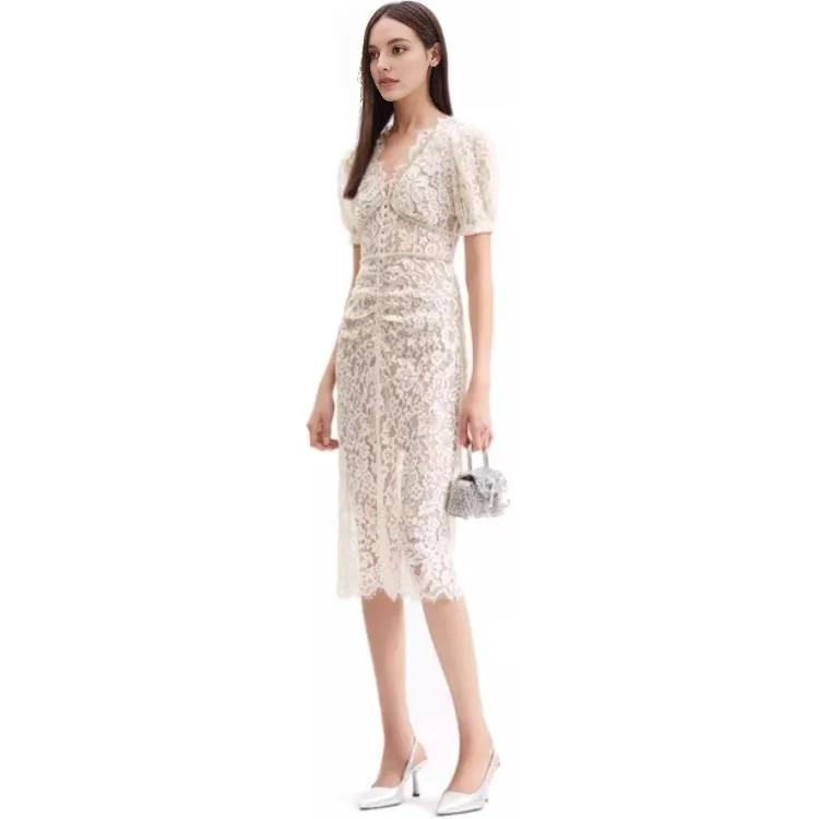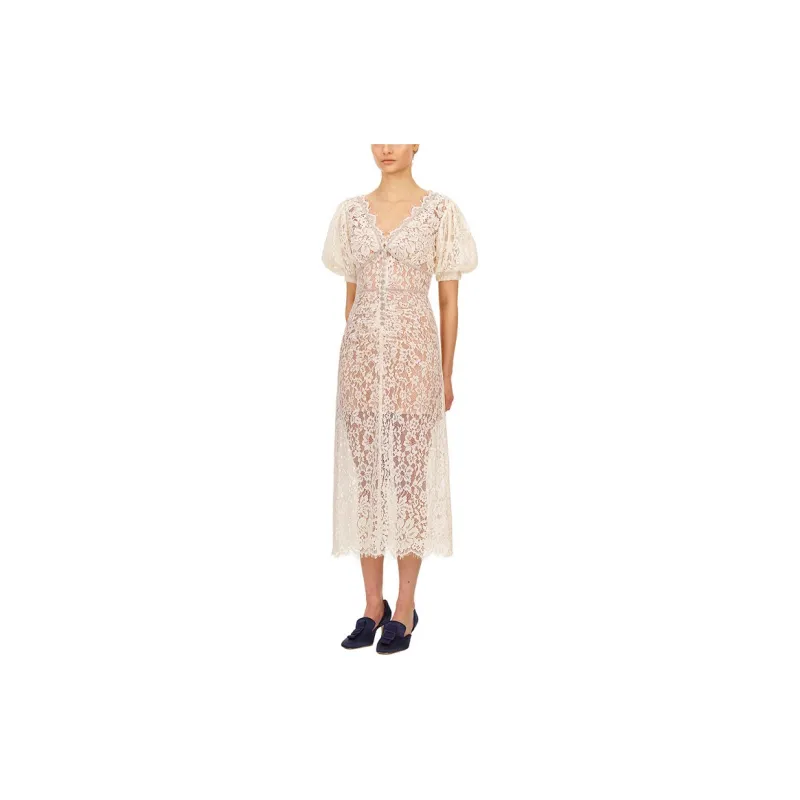 Self Портрет Короткий Рукав Платье Женское Белое