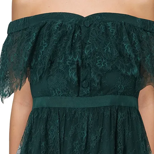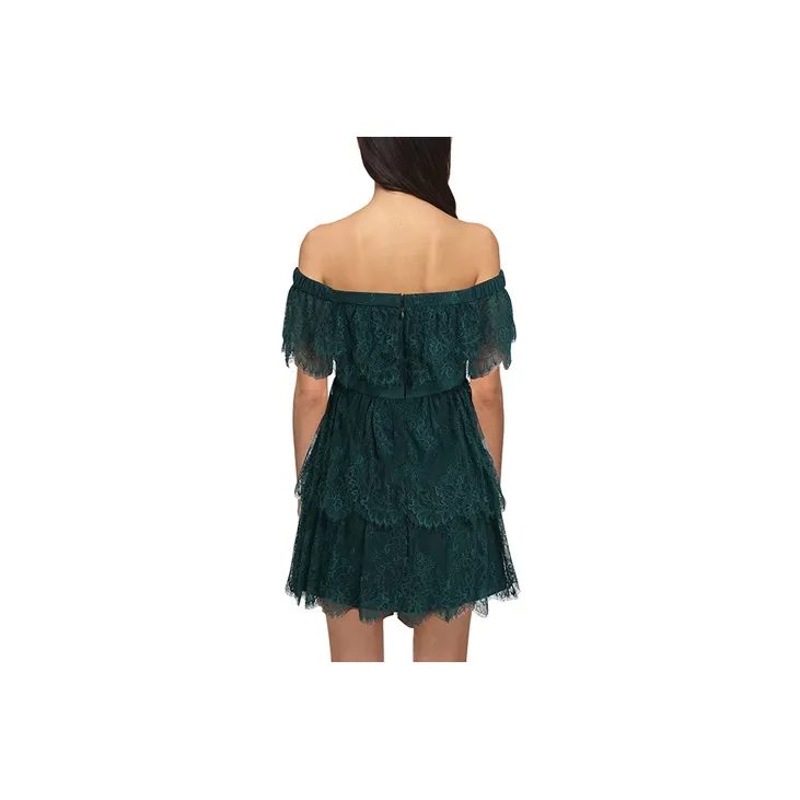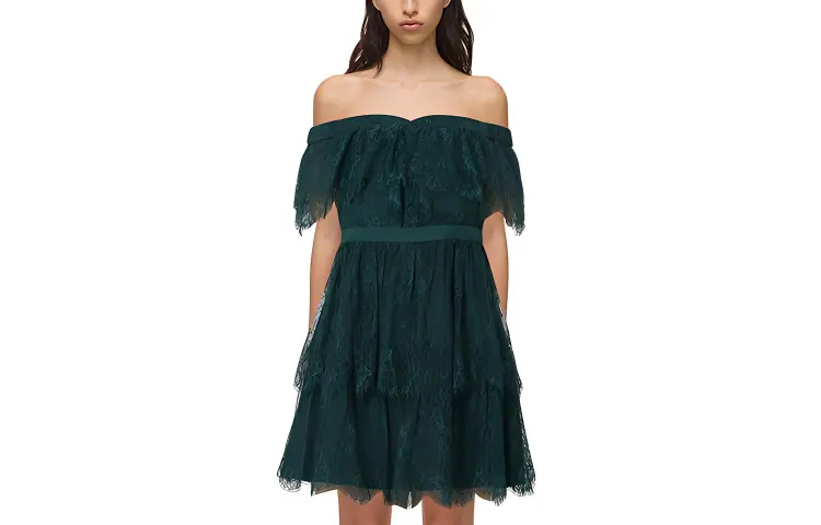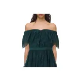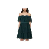 Self Портрет Темно-зеленый Женские Короткие Платья с Рукавами