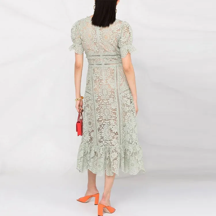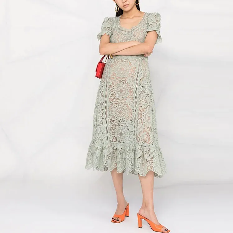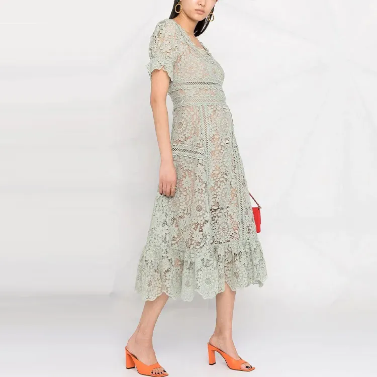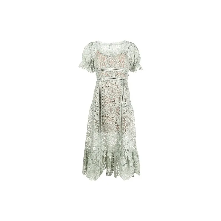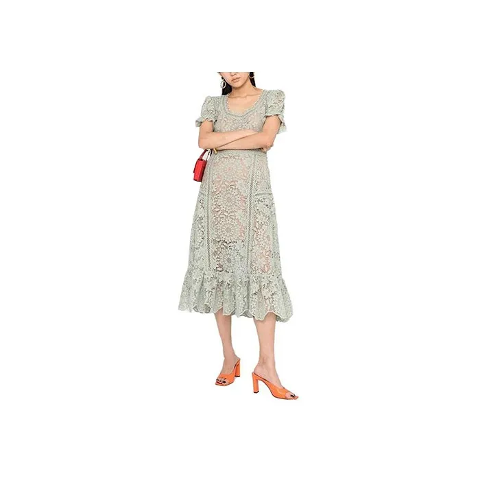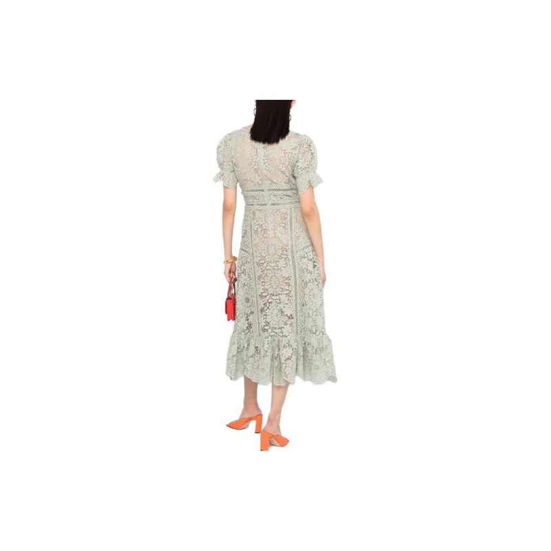 Self Портрет Зеленый Женские Короткие Платья с Рукавами