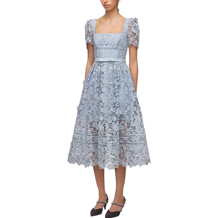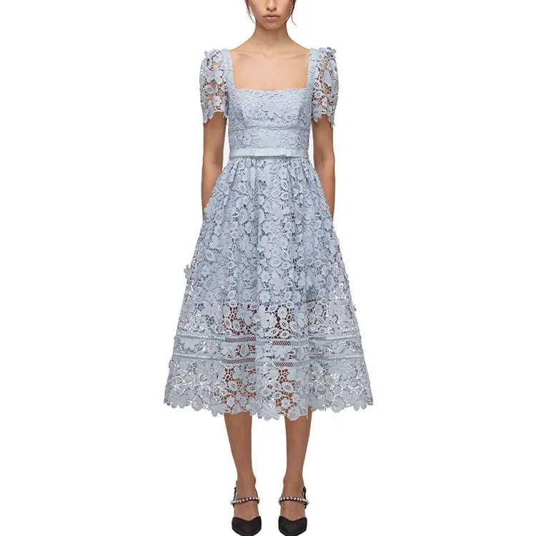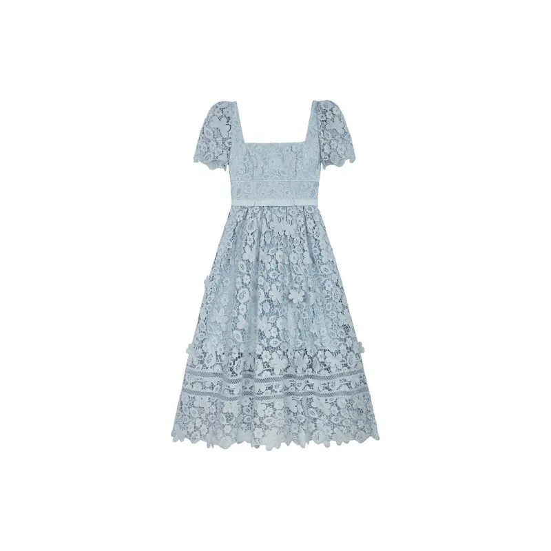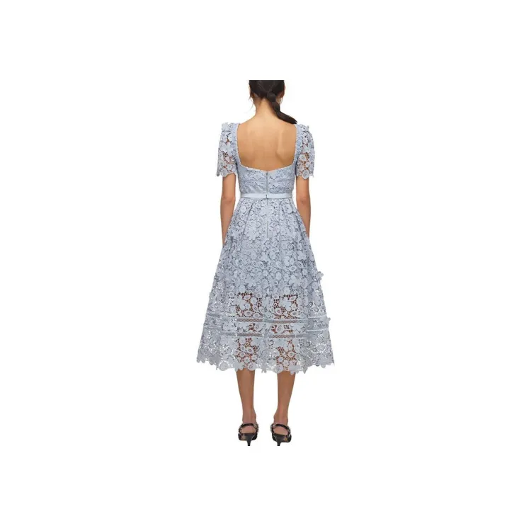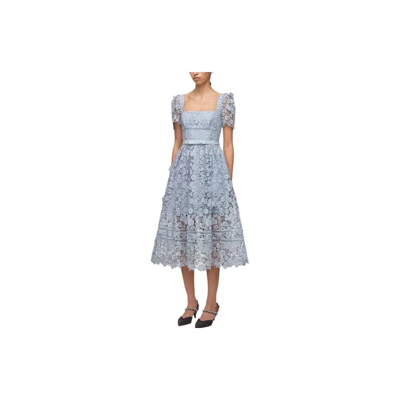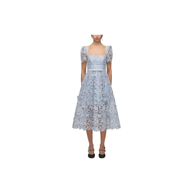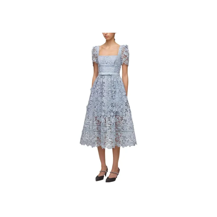 Self Портрет Norway Синий Женские Короткие Платья с Рукавами
