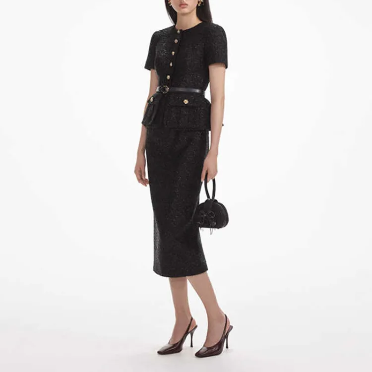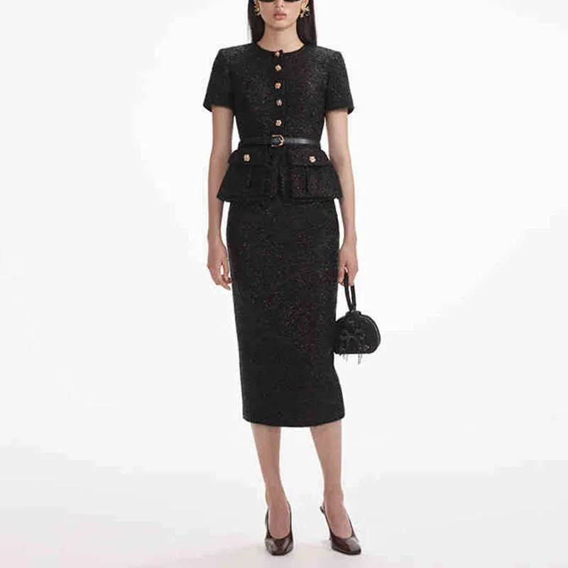 Self Portrait Короткий рукав Платье Женское Классический черный