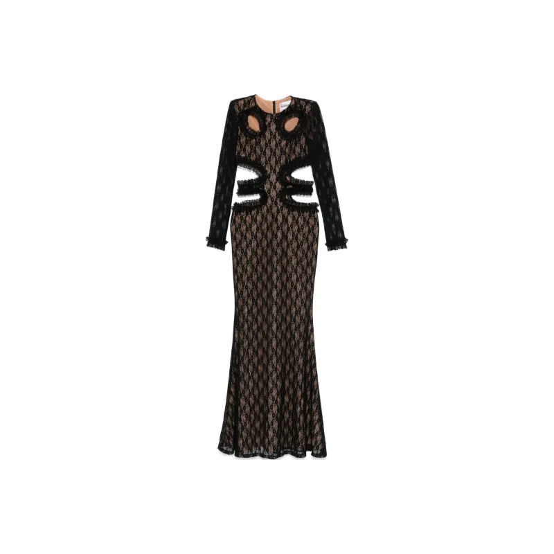 Self Portrait Длинное Платье с Длинными Рукавами Женское Черное