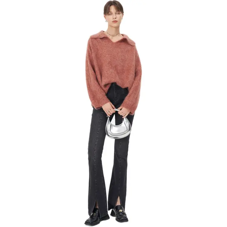 Self Who Кашемир Свитер Женские Оранжево-красный Цветочный Марля