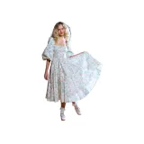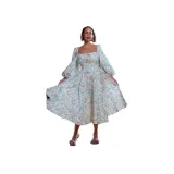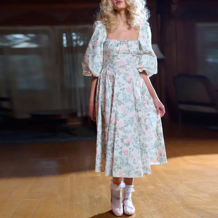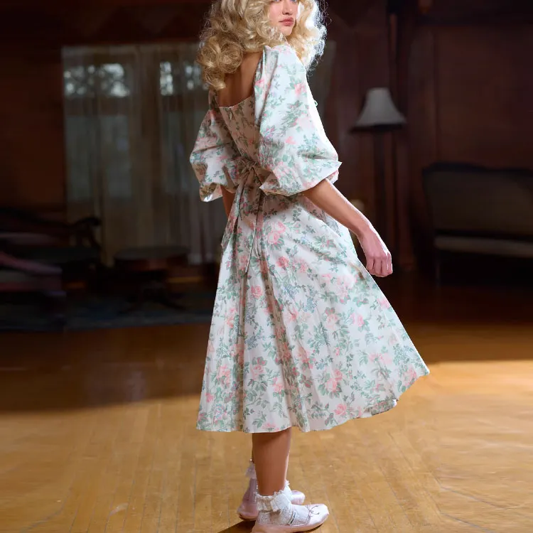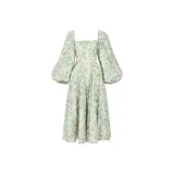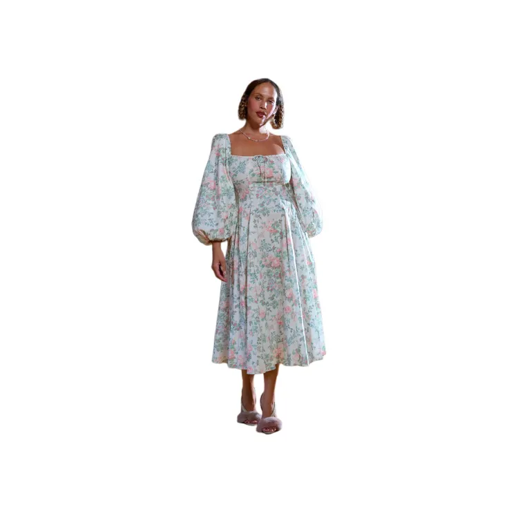 Selkie Коллекция FW23 Длинное Платье с Длинными Рукавами Женское Светлый Абрикос с Зеленым Листом и Розовым Принт
