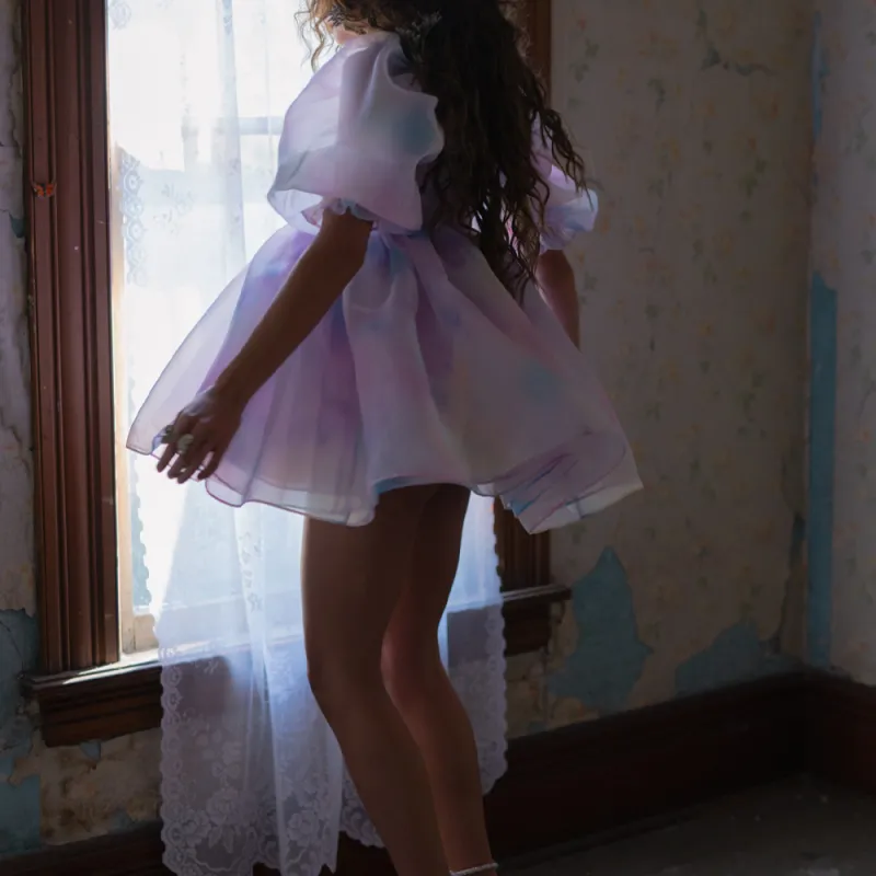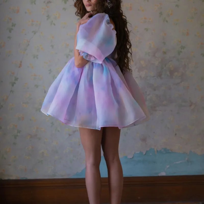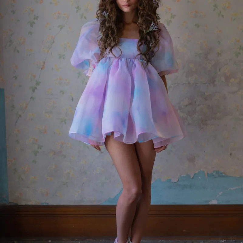 Selkie Коллекция Короткий рукав Платье Женское Tie Dye Радужный с принтом