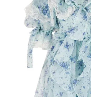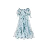 Коллекция Selkie Короткий рукав Платье Женское Бирюзовый Подкладочная ткань с синим принтом Глициния
