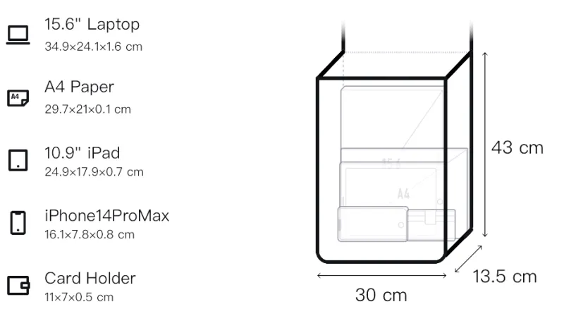 Д30*Ш13,5*В43см