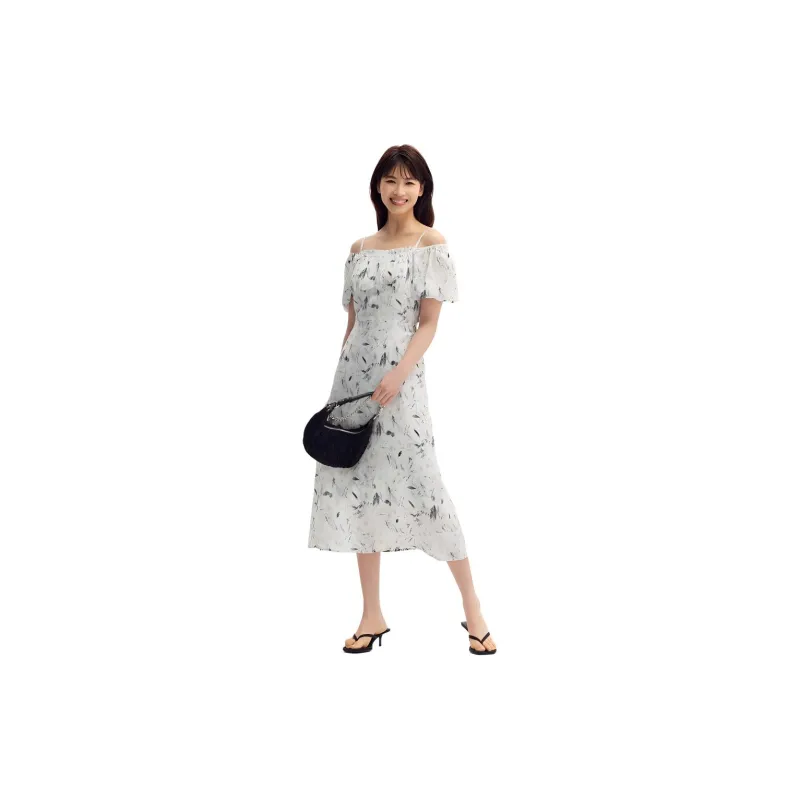 SEM R Короткий рукав Платье Женское Черный Белый Тон