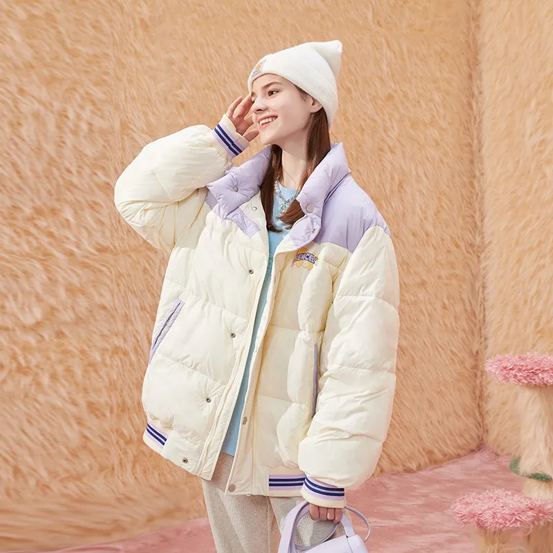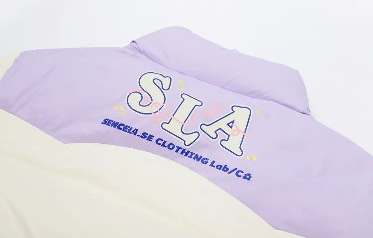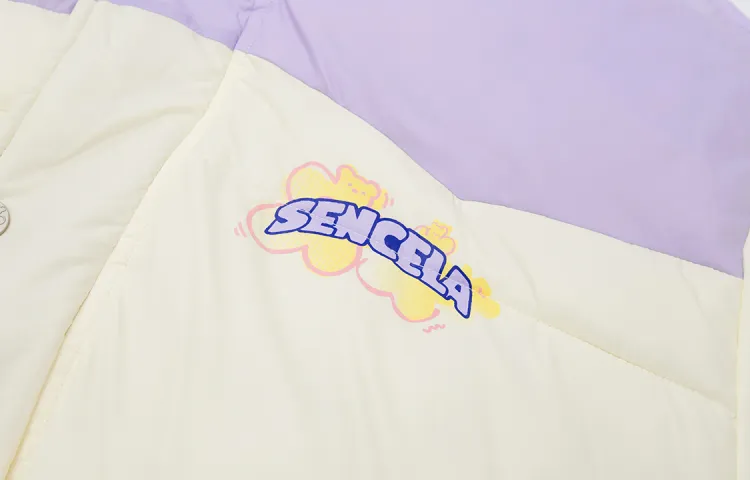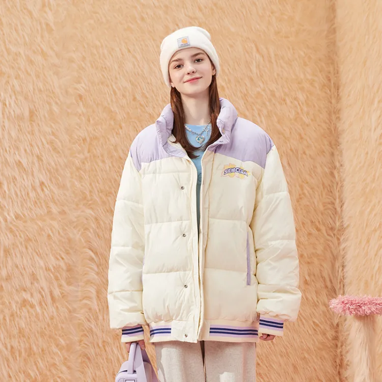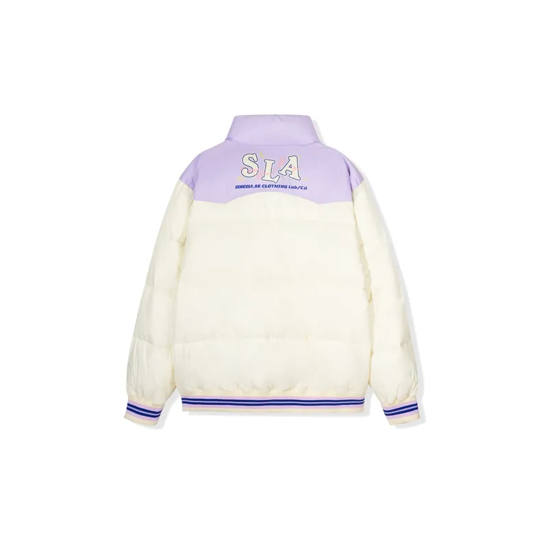 SENCE LA Буква Воротник-стойка Свободный крой Пуховая куртка Унисекс Бежевый Желтый