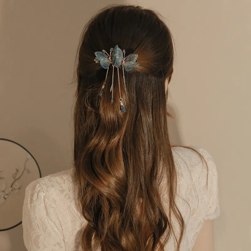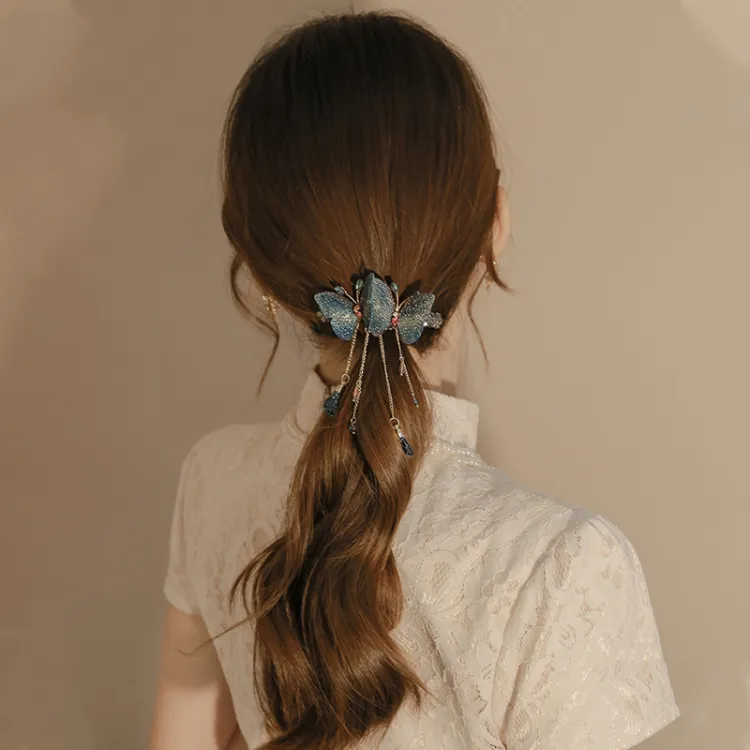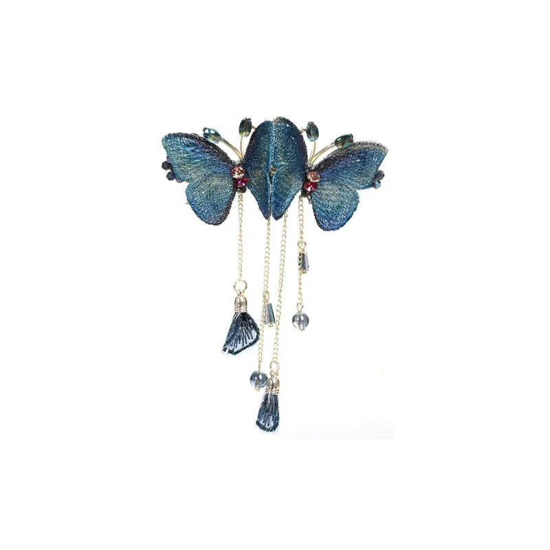 Стиль:Вышивка, двойная бабочка, кисточка, заколка для волос