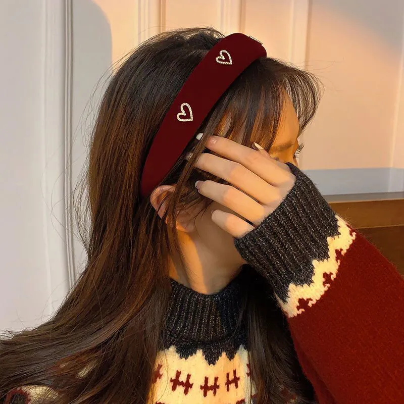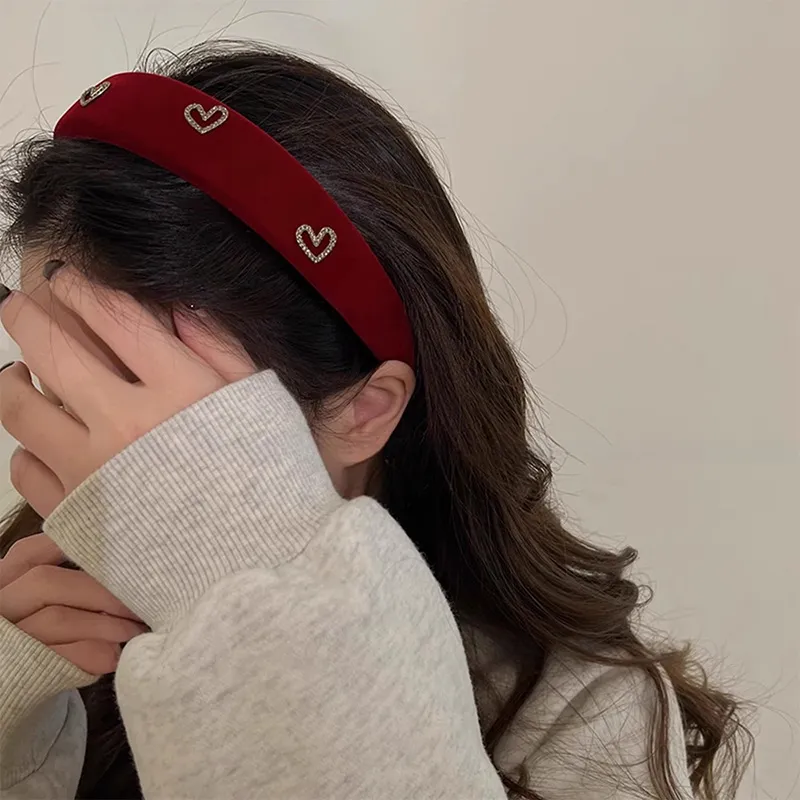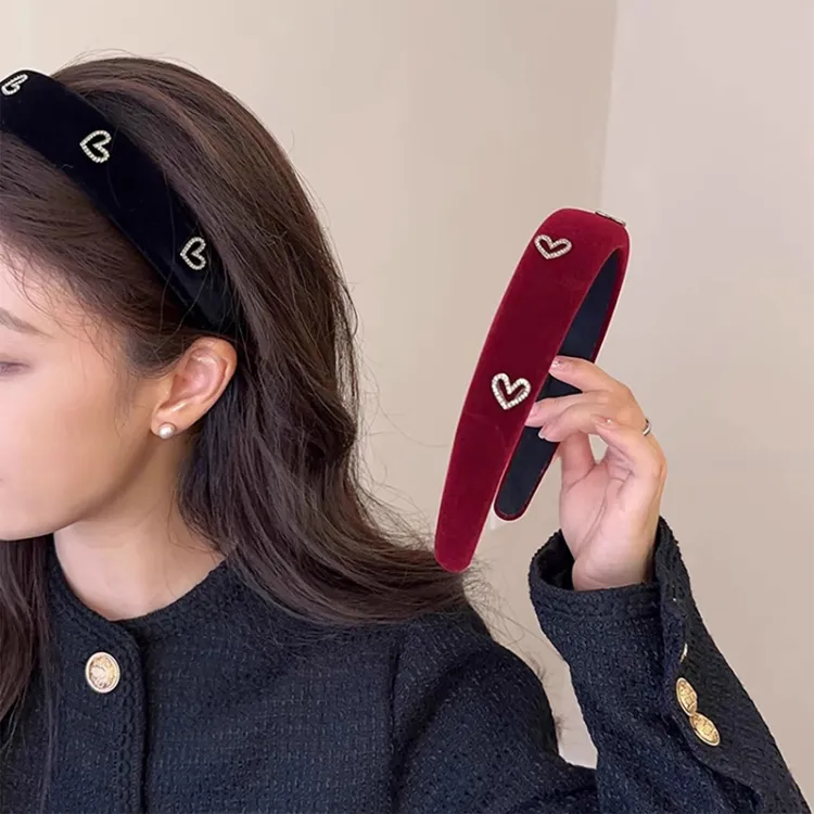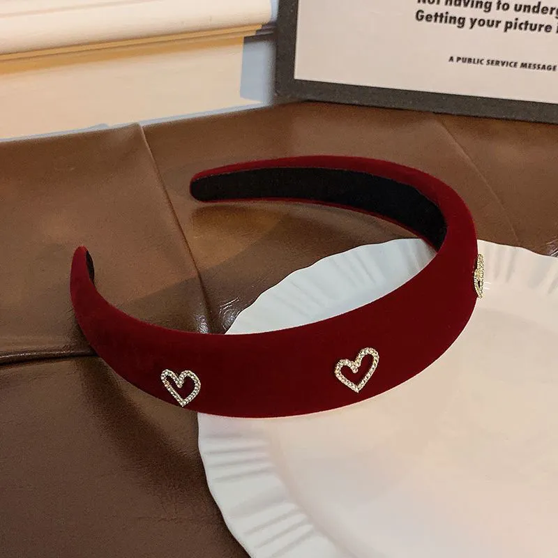 Винтажный велюр, ободок в форме сердца [Бургундский]