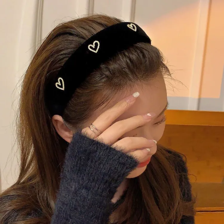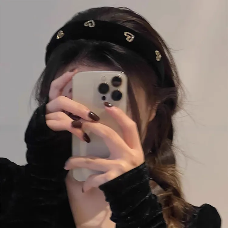 Винтажный велюр, ободок с сердцем [черный]