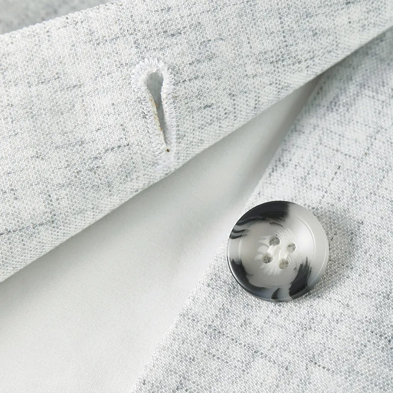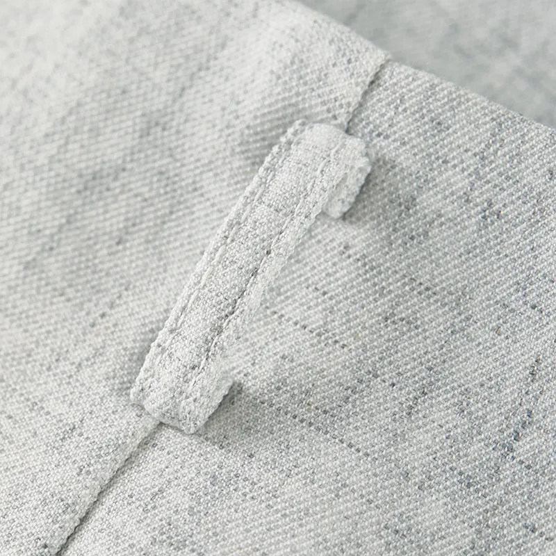 "Ткань: 92,7% полиэстер, 5,8% лен, 1,5% эластан (за исключением клейовой подкладки и клея). Подкладка: 100% полиэстер."