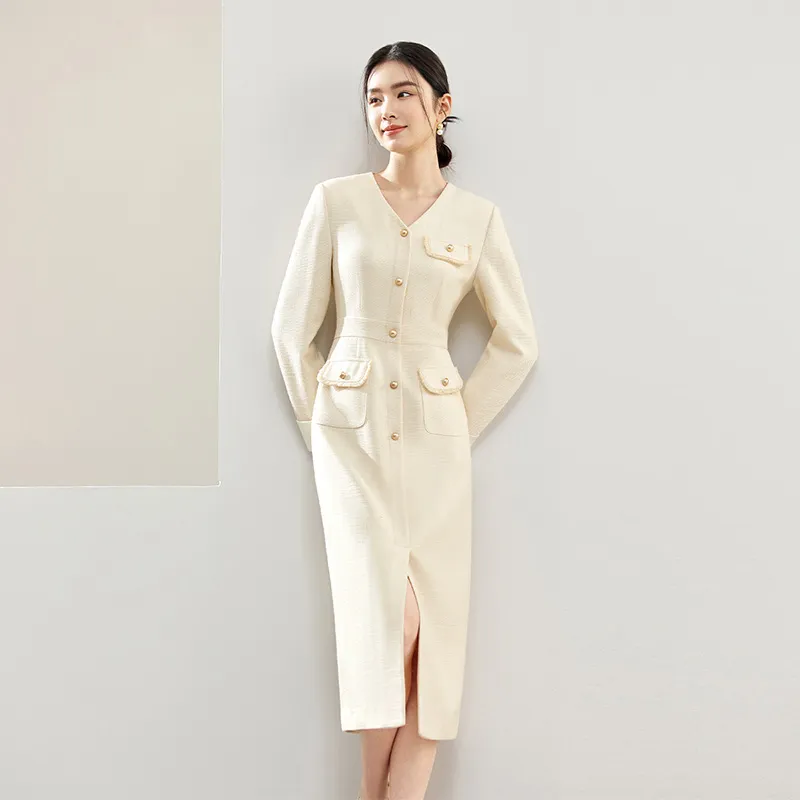 SENTUBILA Абрикос Женские Длинные Платья с Рукавами