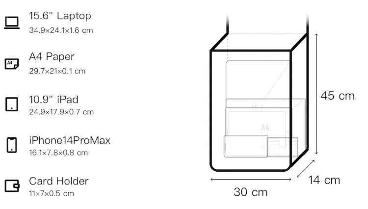 Длина: 30 см, ширина: 14 см, высота: 45 см