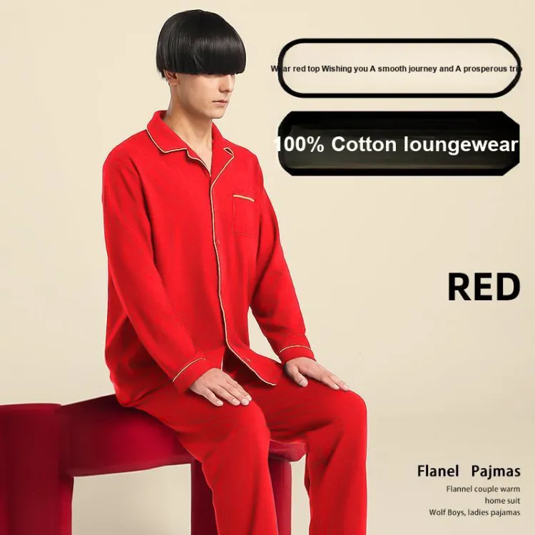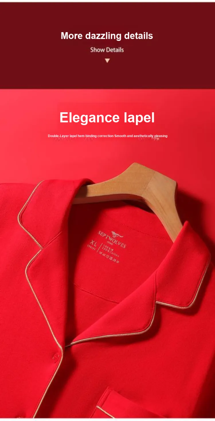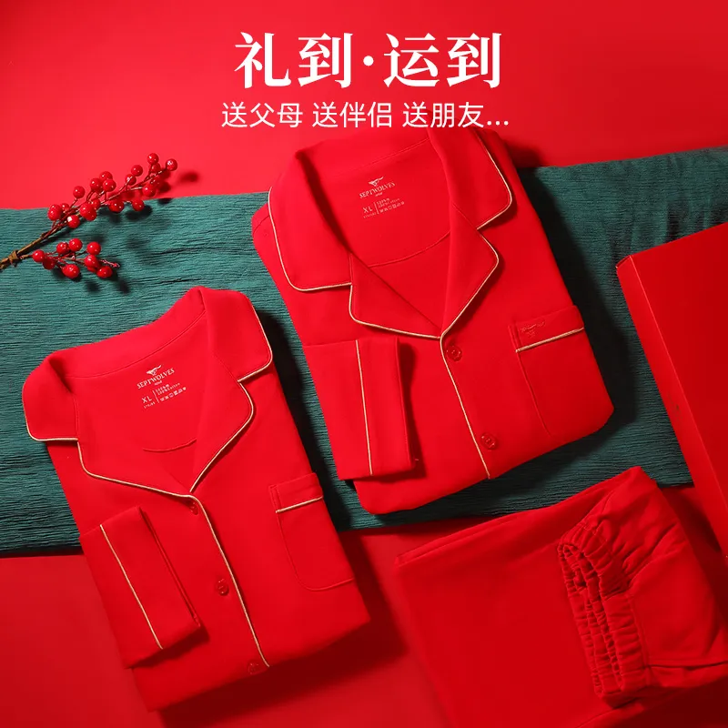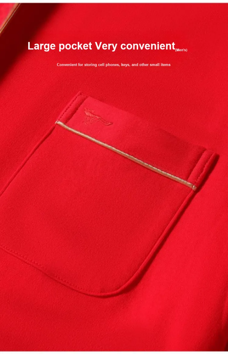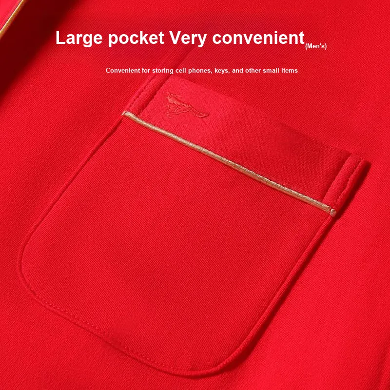 Цвет:Женский комплект (красный) из 100% хлопка, безопасный для кожи, с мотивом "Процветание" и "Празднование".