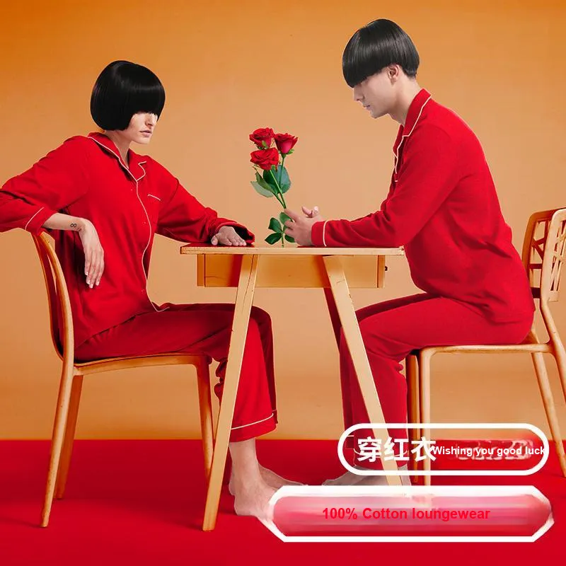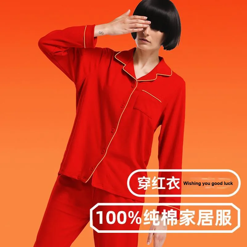 Женский комплект (красный) из 100% хлопка, безопасный для кожи, с мотивом "Процветание" и "Празднование".